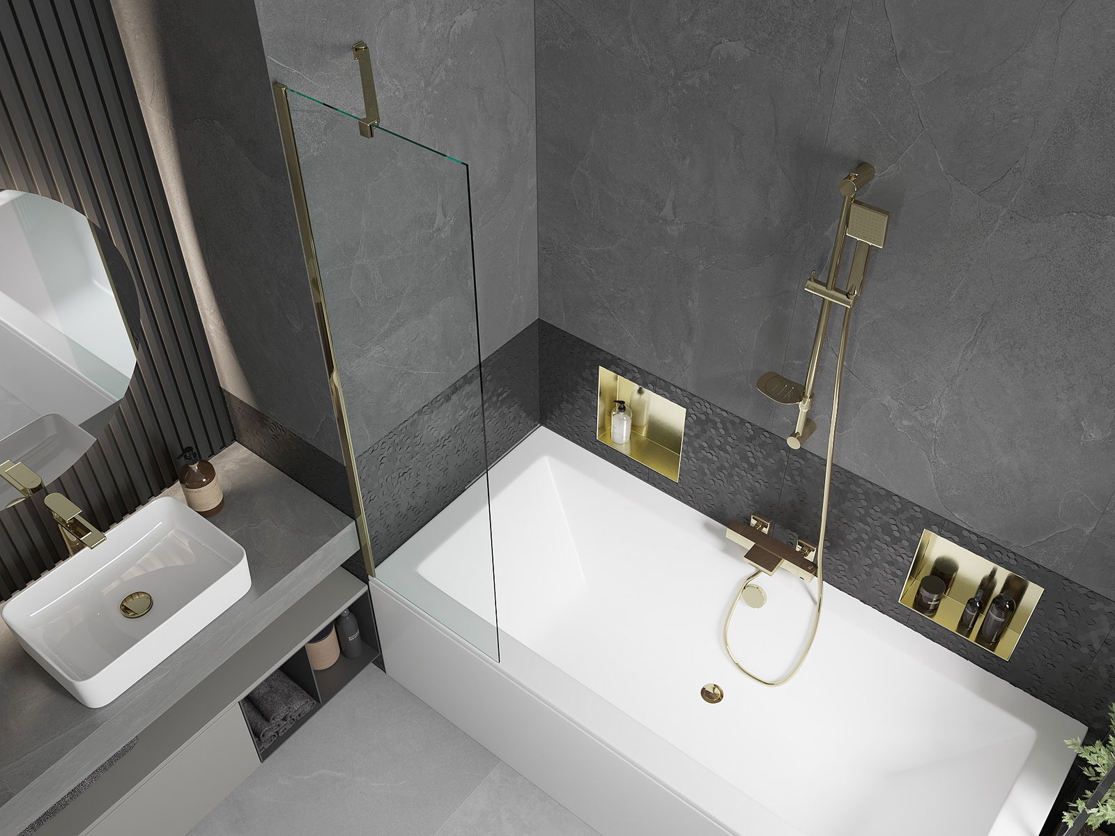 Mexen Cube baignoire rectangulaire 170 x 80 cm avec habillage et paroi 1 volet 50 cm, transparent, doré - 550517080X9505000050