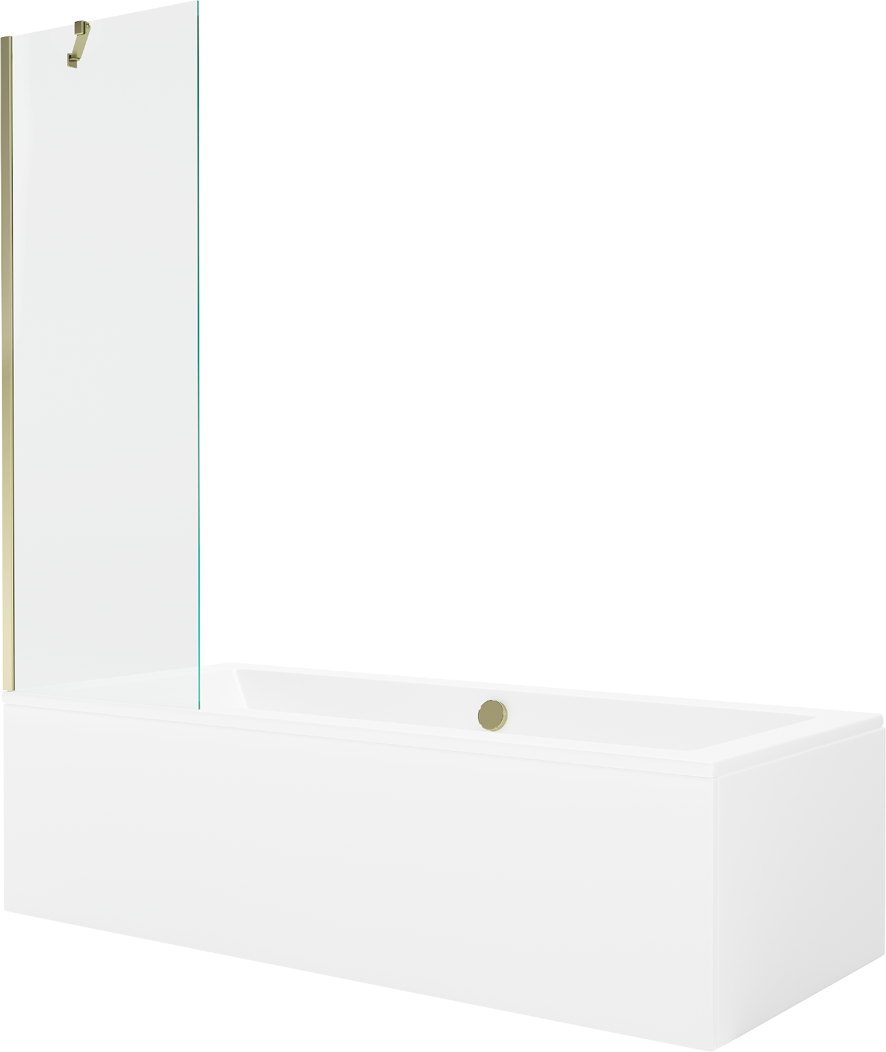Mexen Cube baignoire rectangulaire 170 x 80 cm avec tablier et paroi 1 vantail 60 cm, transparent, doré - 550517080X9506000050
