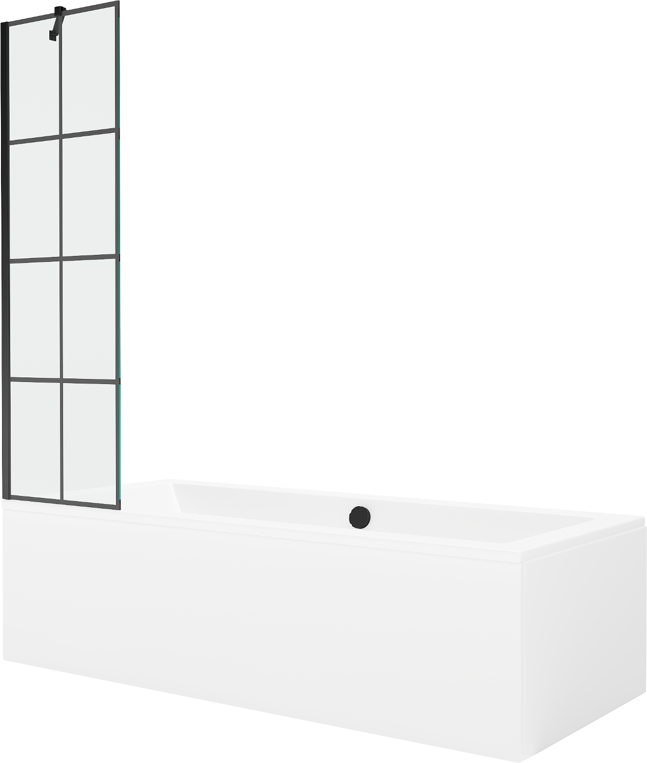 Mexen Cube baignoire rectangulaire 170 x 80 cm avec tablier et paravent à 1 volet 50 cm, motif noir - 550517080X9505007077