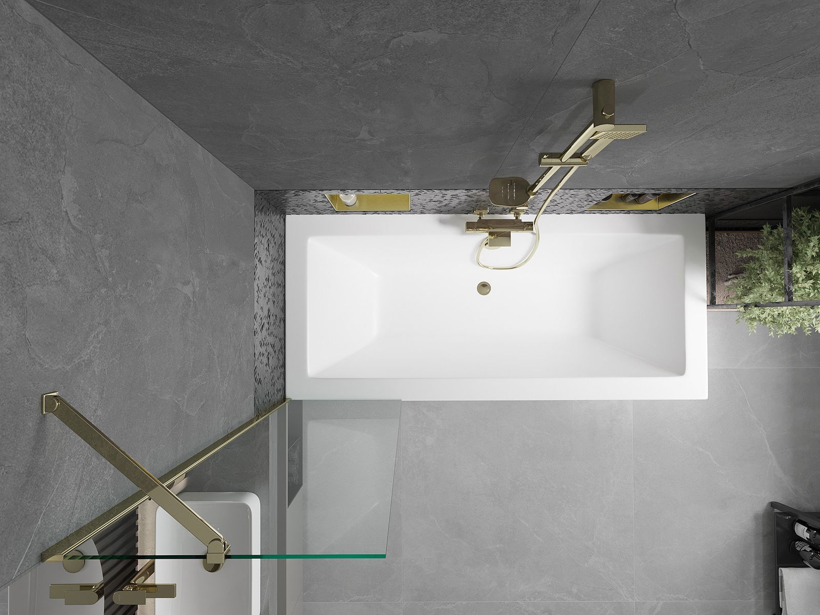 Mexen Cube baignoire rectangulaire 180 x 80 cm avec tablier et paravent à 1 battant 50 cm, transparent, doré