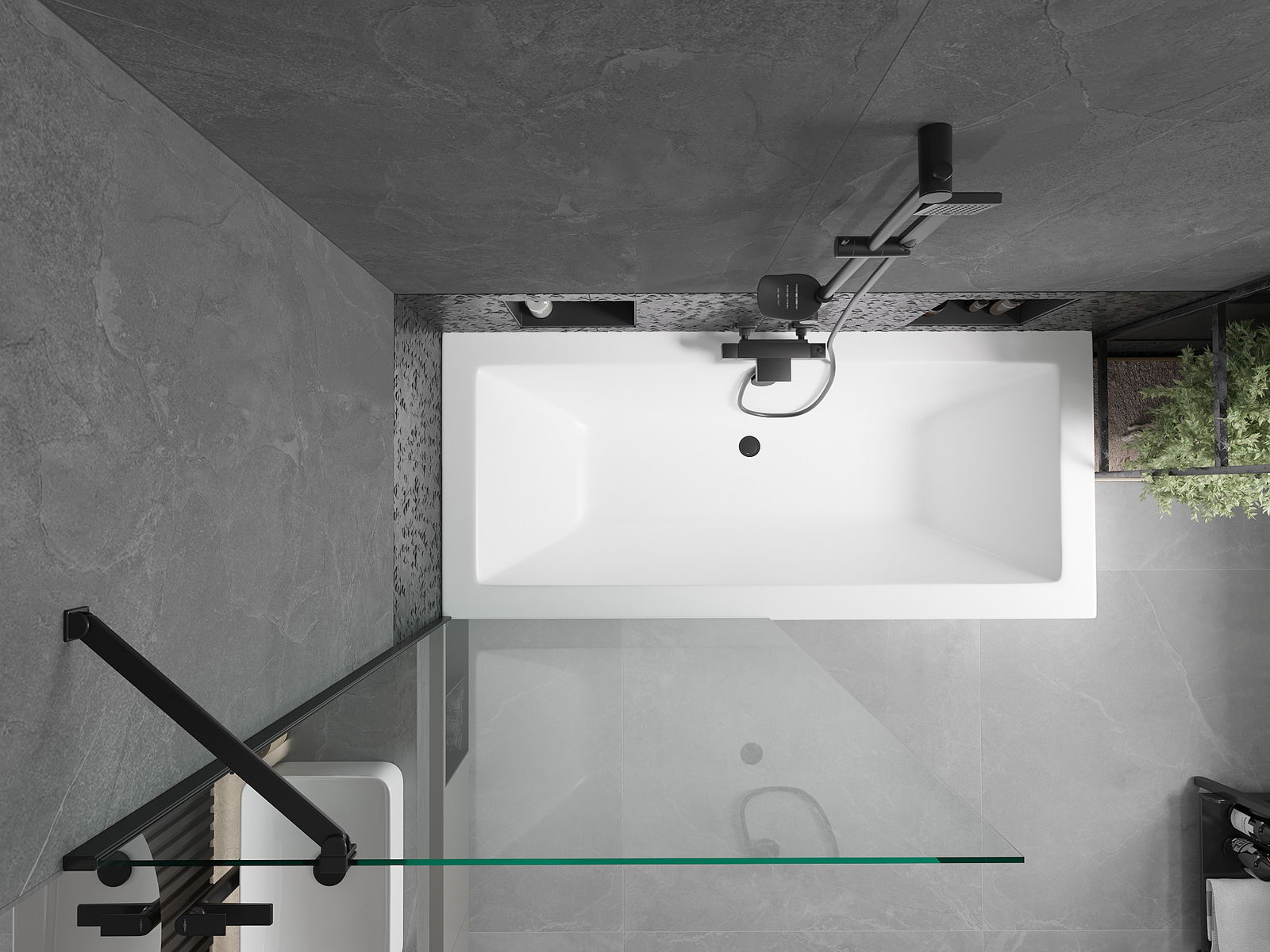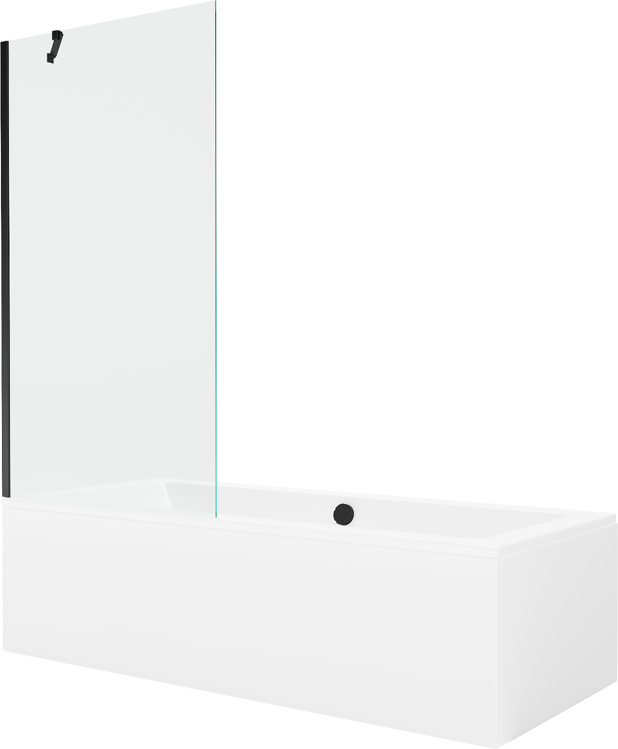 Mexen Cube baignoire rectangulaire 180 x 80 cm avec habillage et pare-baignoire à 1 battant 90 cm, transparent, noir