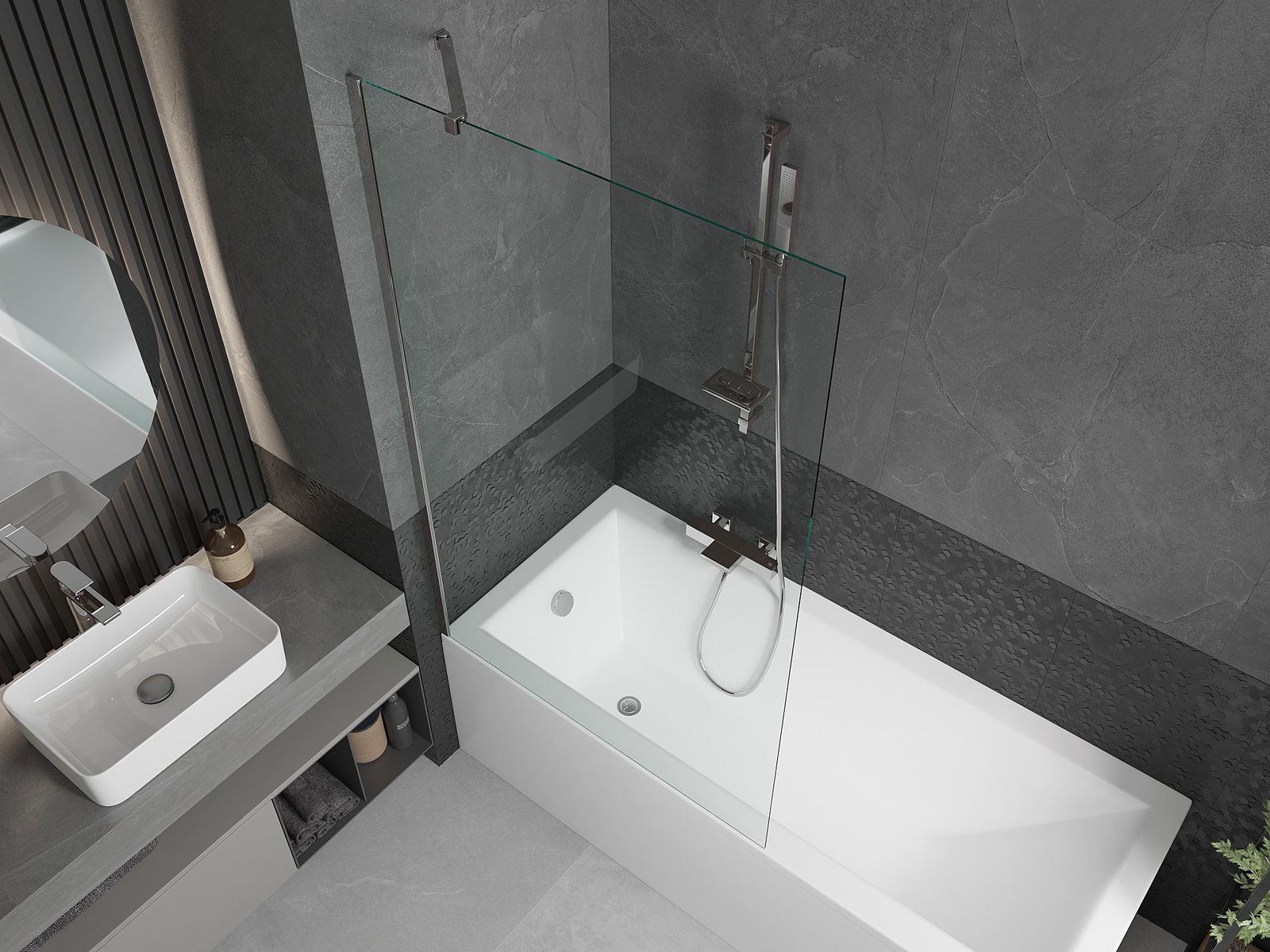 Mexen Cubik baignoire rectangulaire 150 x 70 cm avec revêtement et paravent à 1 panneau de 100 cm, transparent, chrome