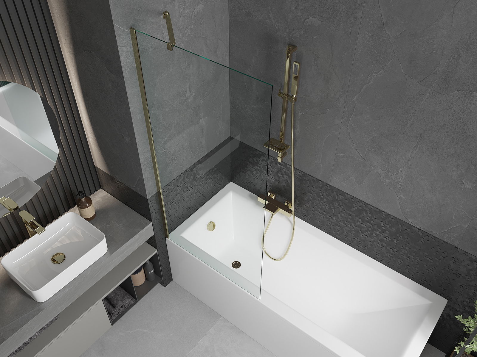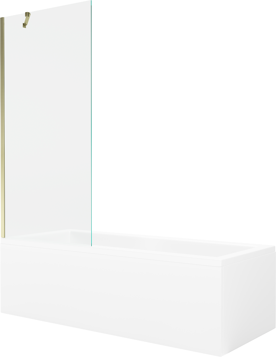 Mexen Cubik baignoire rectangulaire 160 x 70 cm avec habillage et paravent à 1 volet 80 cm, transparent, doré