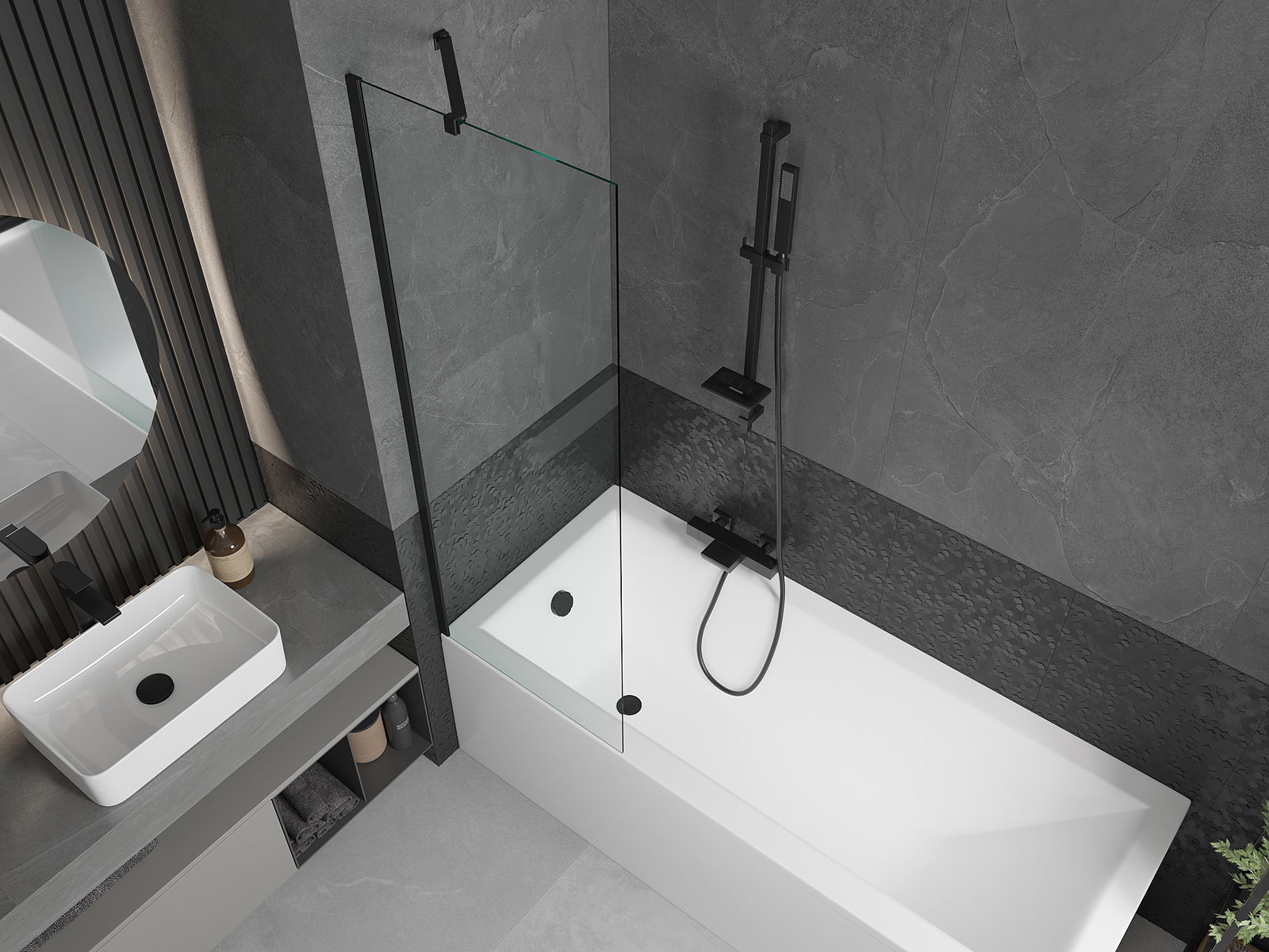 Mexen Cubik baignoire rectangulaire 160 x 70 cm avec tablier et écran pare-baignoire à 1 volet 60 cm, transparent, noir