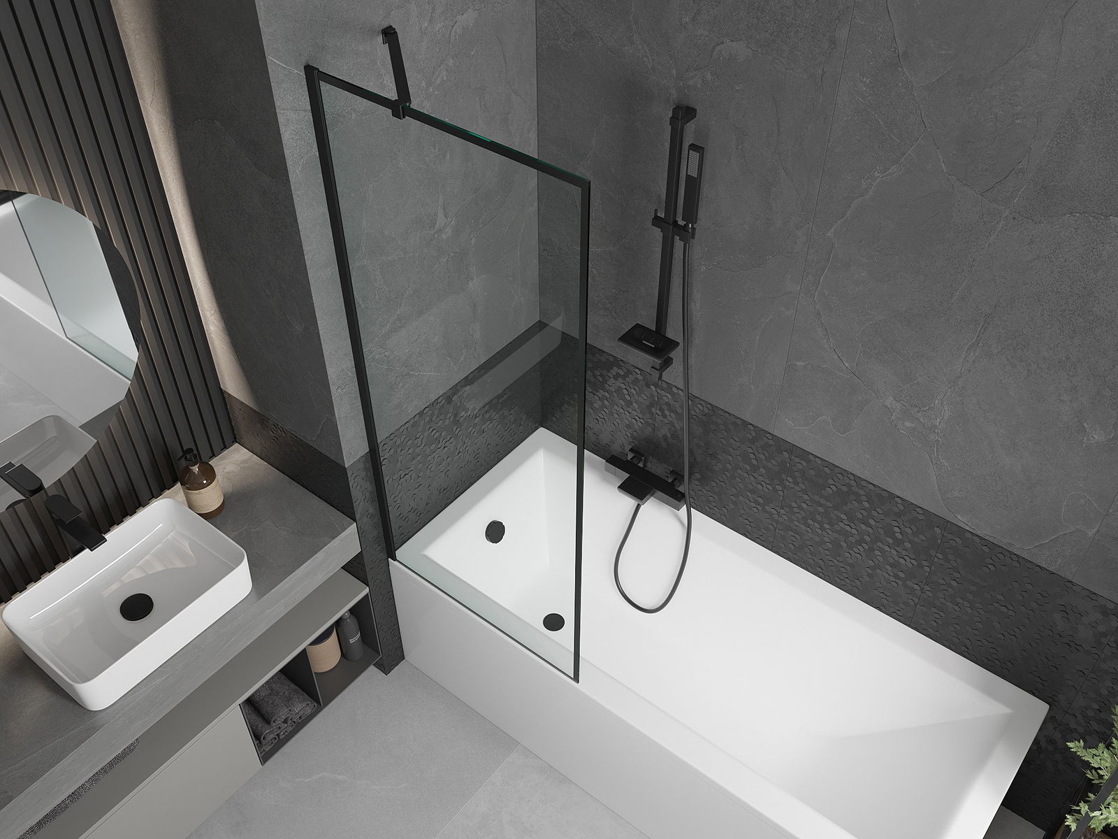 Protection efficace contre les éclaboussures d'eau pendant le bain. Le pare-baignoire est doté de joints qui s'adaptent parfaitement à la vitre et au rebord de la baignoire. Solution fonctionnelle garantissant sécurité et nettoyage facile.