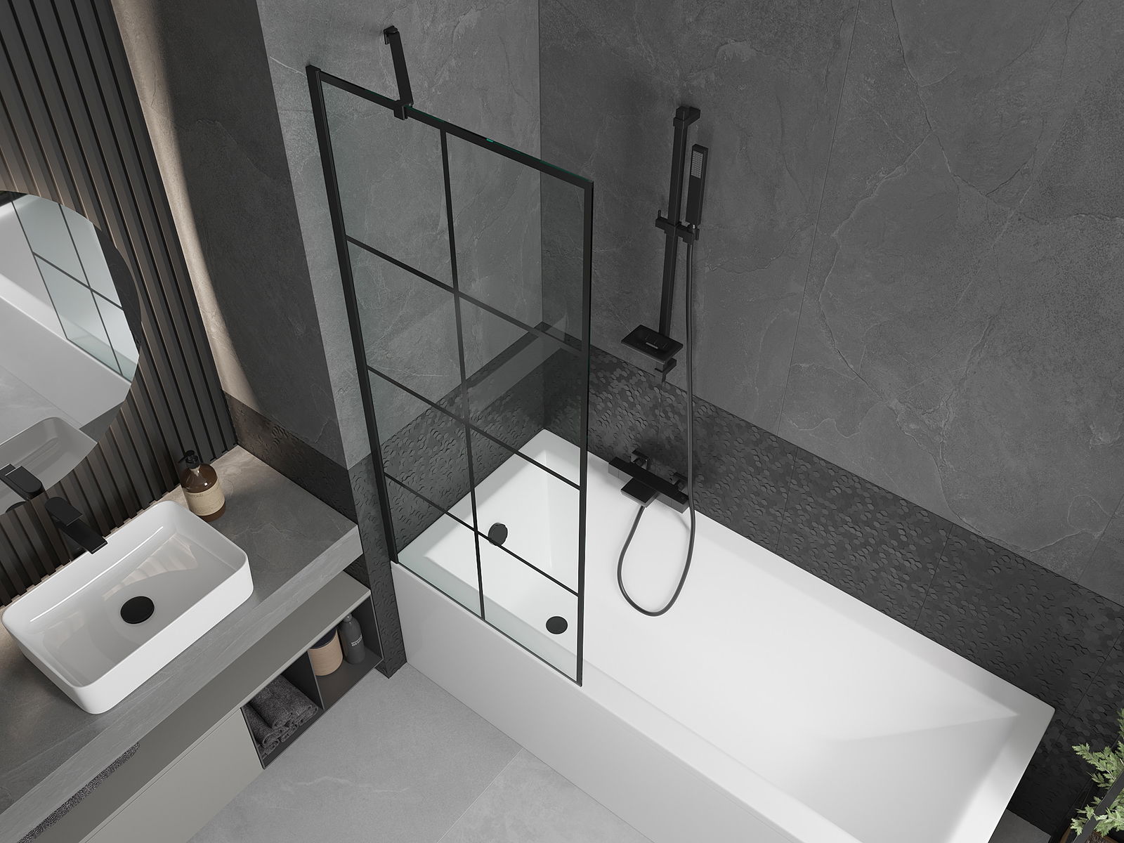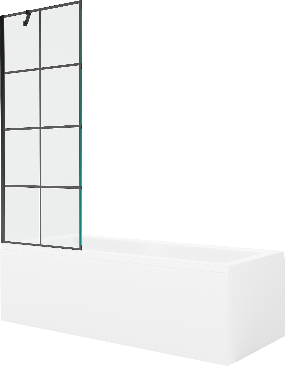 Mexen Cubik baignoire rectangulaire 160 x 70 cm avec tablier et paroi de douche à 1 volet 70 cm, motif noir