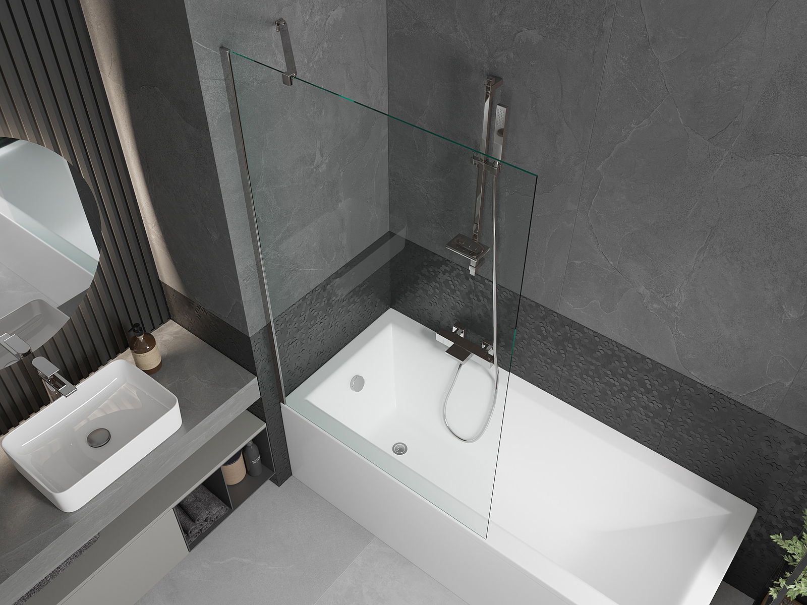 Protection efficace contre le débordement d'eau pendant le bain. Le pare-douche est équipé de joints qui s'adaptent parfaitement à la surface du verre et au bord de la baignoire. Une solution fonctionnelle assurant sécurité et facilité d'entretien.