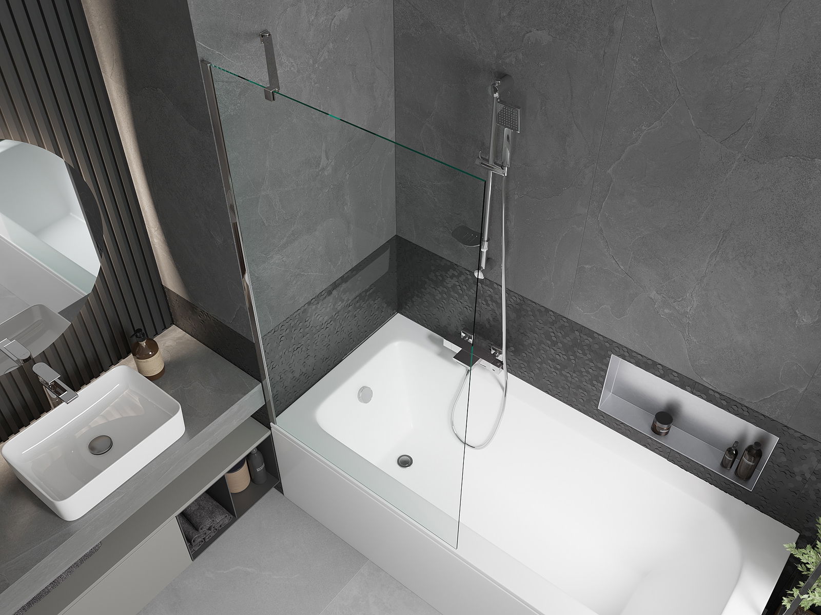 Mexen Vega baignoire rectangulaire 150 x 70 cm avec habillage et paroi de douche à 1 volet 90 cm, transparent, chrome