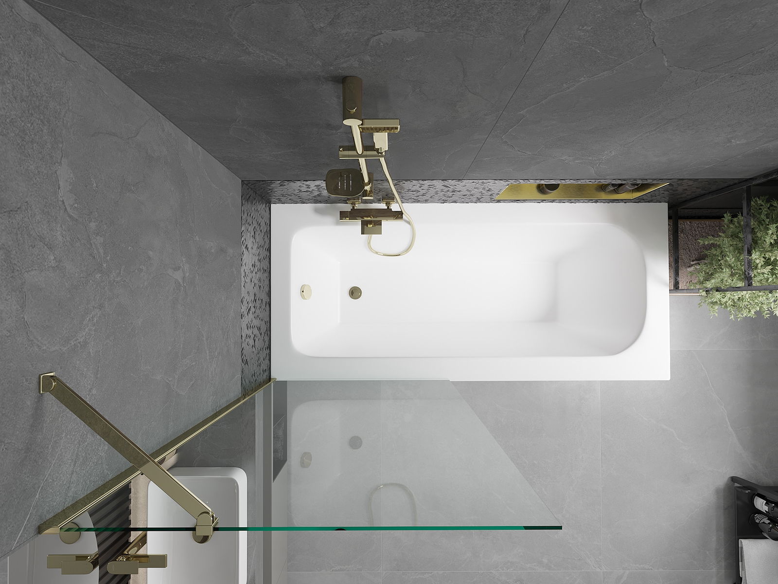 Mexen Vega baignoire rectangulaire 150 x 70 cm avec habillage et paroi 1 battant 80 cm, transparent, doré