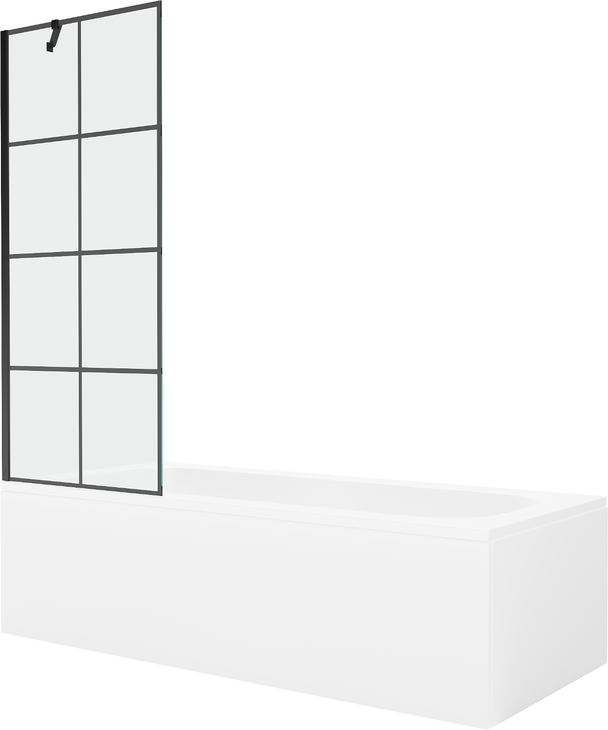 Mexen Vega baignoire rectangulaire 150 x 70 cm avec habillage et paroi de douche 1 volet 70 cm, motif noir