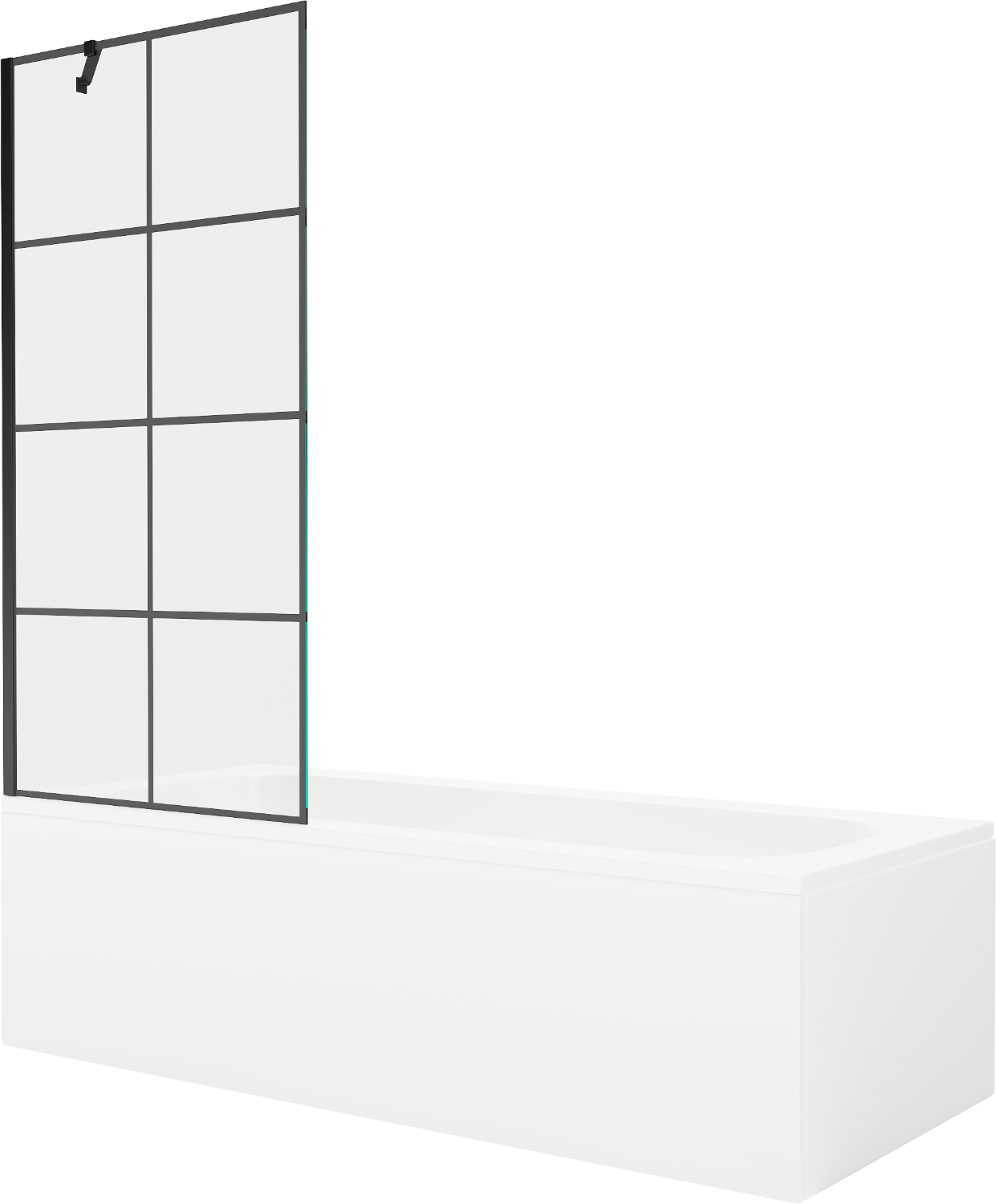 Mexen Vega baignoire rectangulaire 150 x 70 cm avec habillage et paroi pare-baignoire 1 volet 80 cm, motif noir