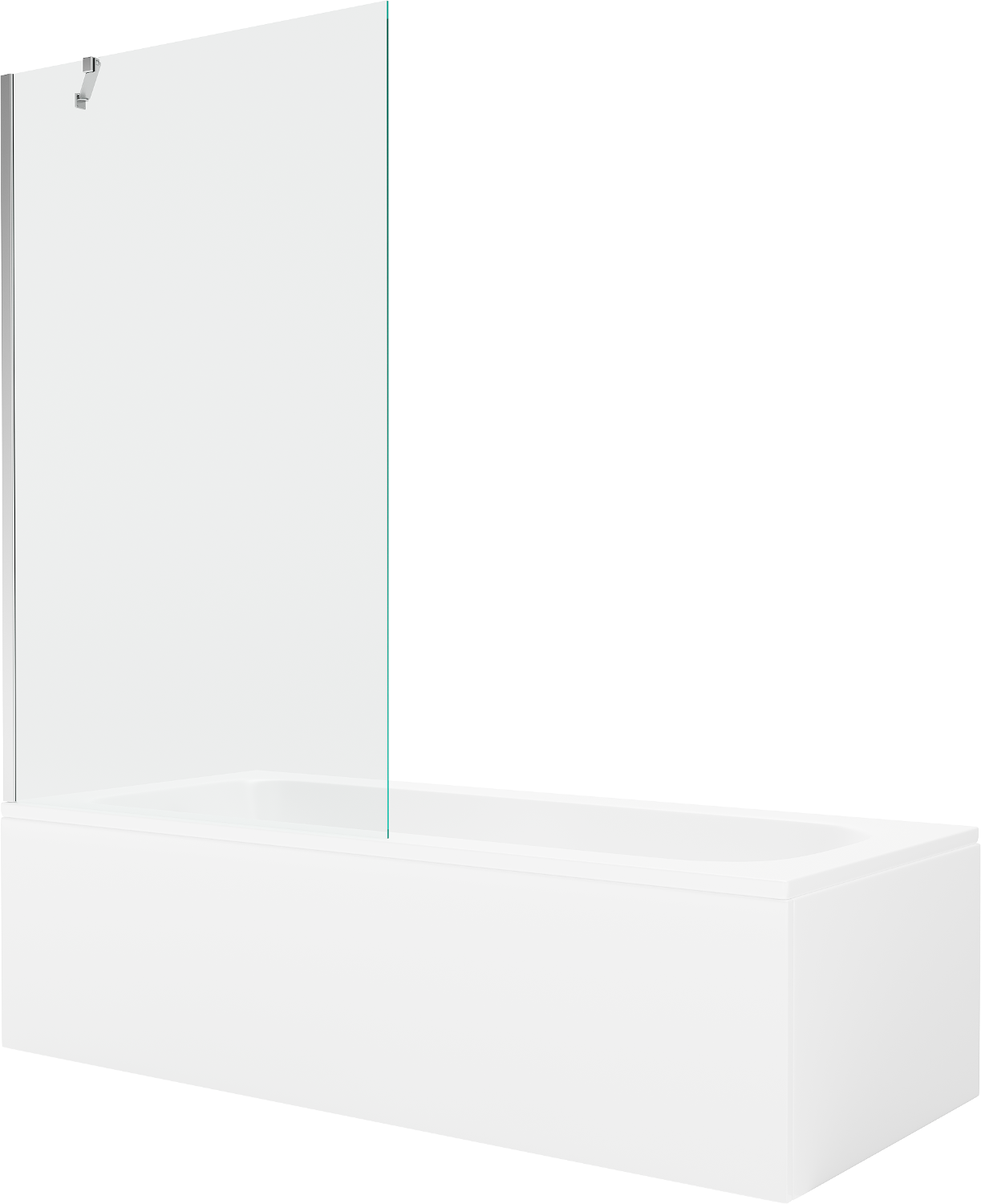 Mexen Vega baignoire rectangulaire 160 x 70 cm avec habillage et paravent à 1 volet 100 cm, transparent, chrome