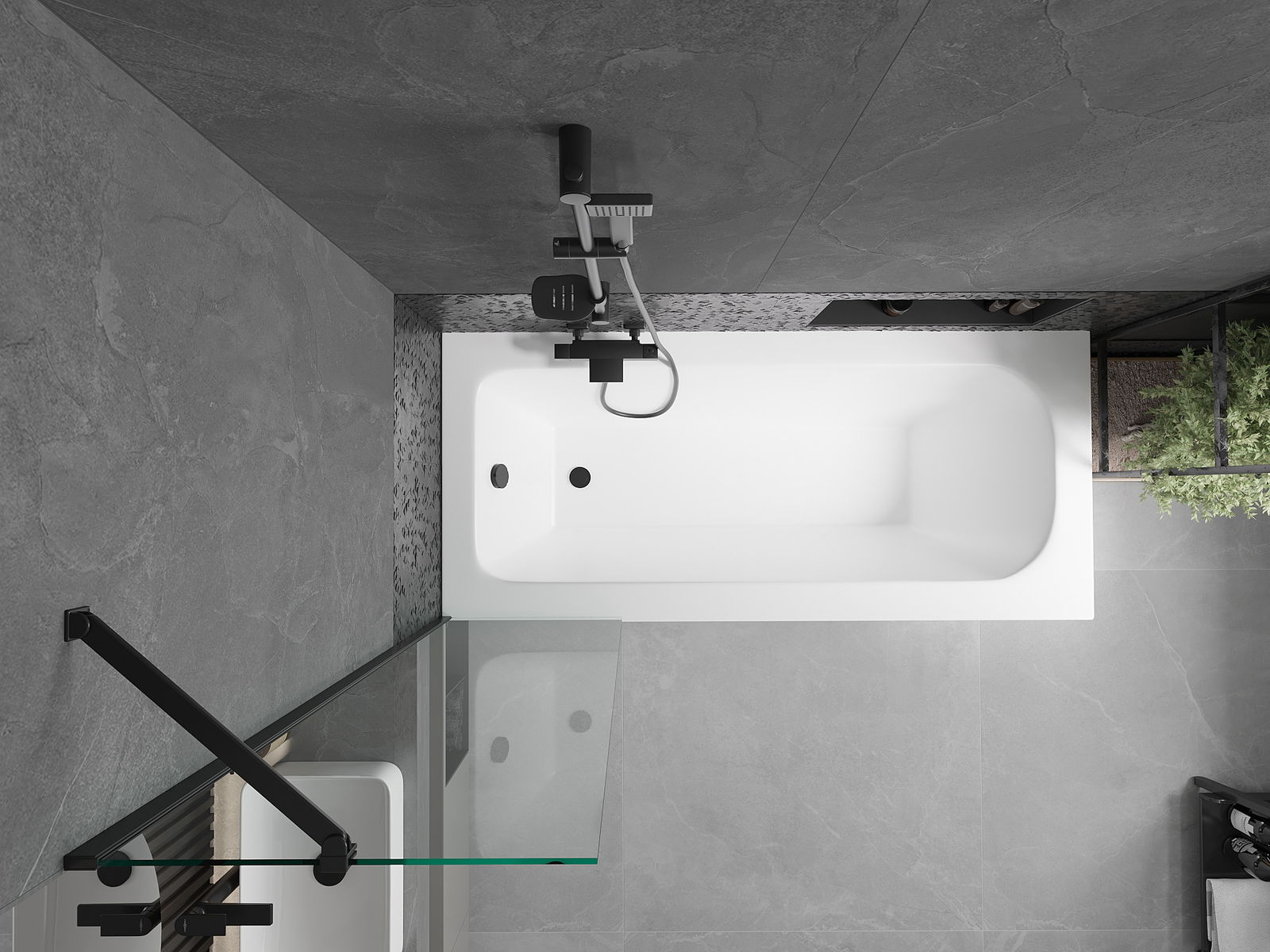 Mexen Vega baignoire rectangulaire 160 x 70 cm avec panneau et paravent à 1 vantail 50 cm, transparent, noir