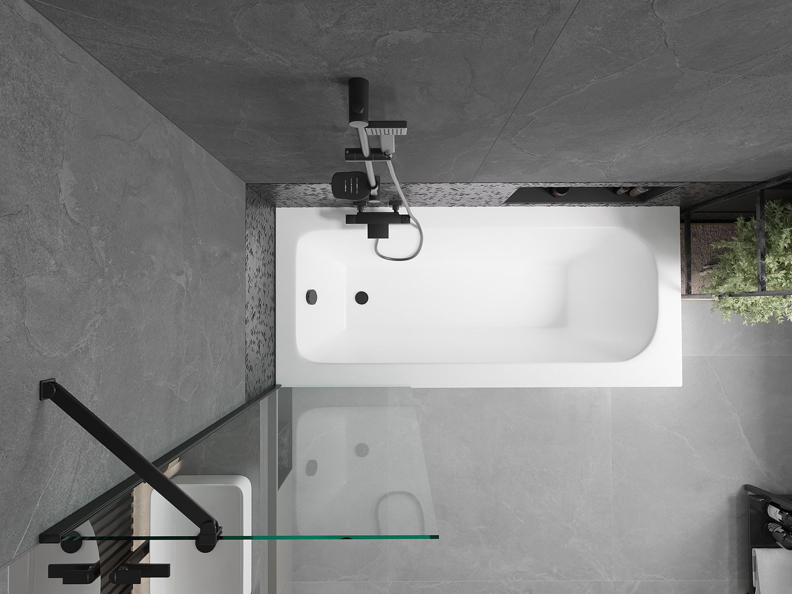 Mexen Vega baignoire rectangulaire 160 x 70 cm avec habillage et paravent à 1 vantail 60 cm, transparent, noir - 550116070X9506?