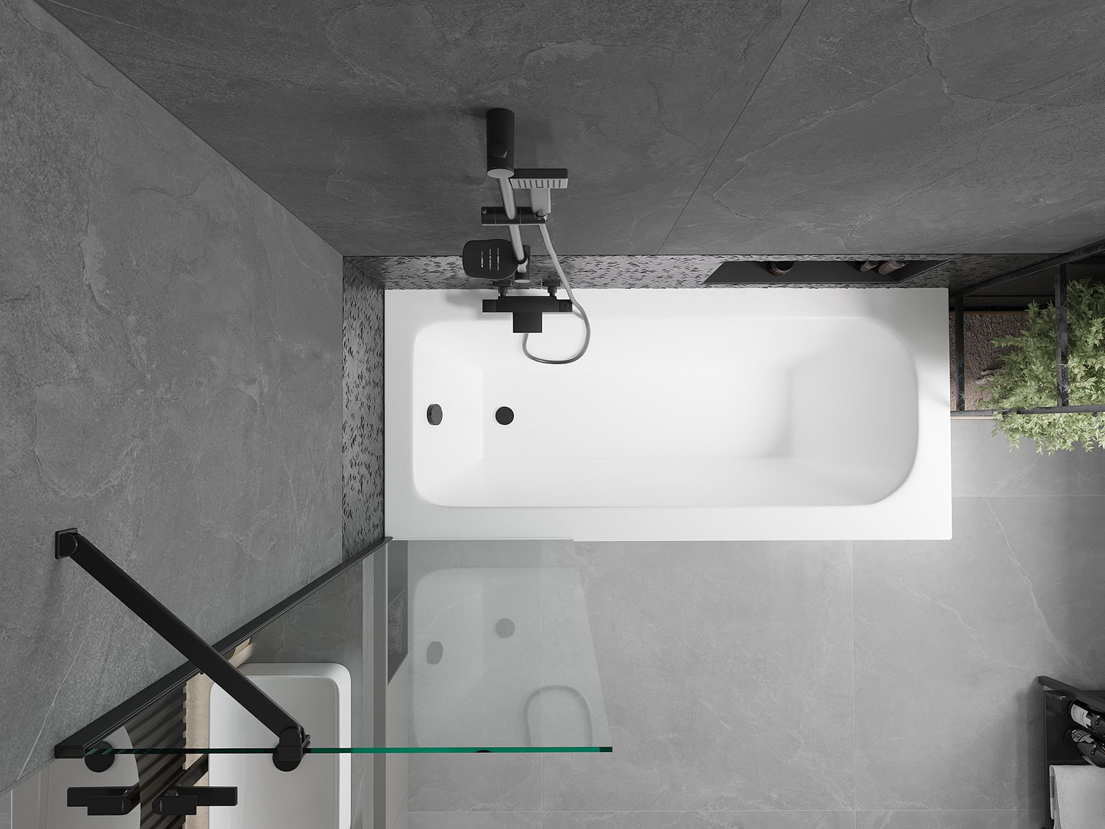 Mexen Vega baignoire rectangulaire 170 x 70 cm avec habillage et paravent à 1 panneau 60 cm, transparent, noir
