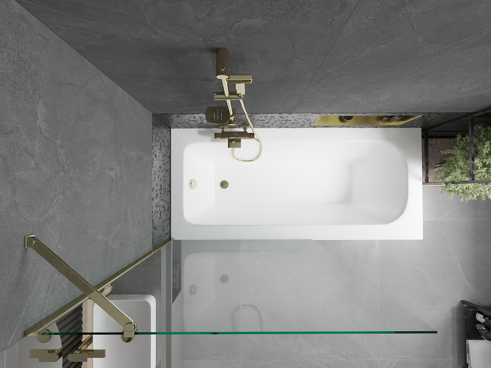 Mexen Vega baignoire rectangulaire 180 x 80 cm avec tablier et paravent 1 volet 100 cm, transparent, doré