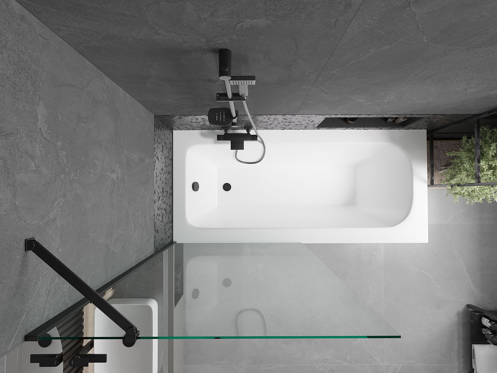 Mexen Vega baignoire rectangulaire 180 x 80 cm avec habillage et pare-douche à 1 vantail 90 cm, transparent, noir
