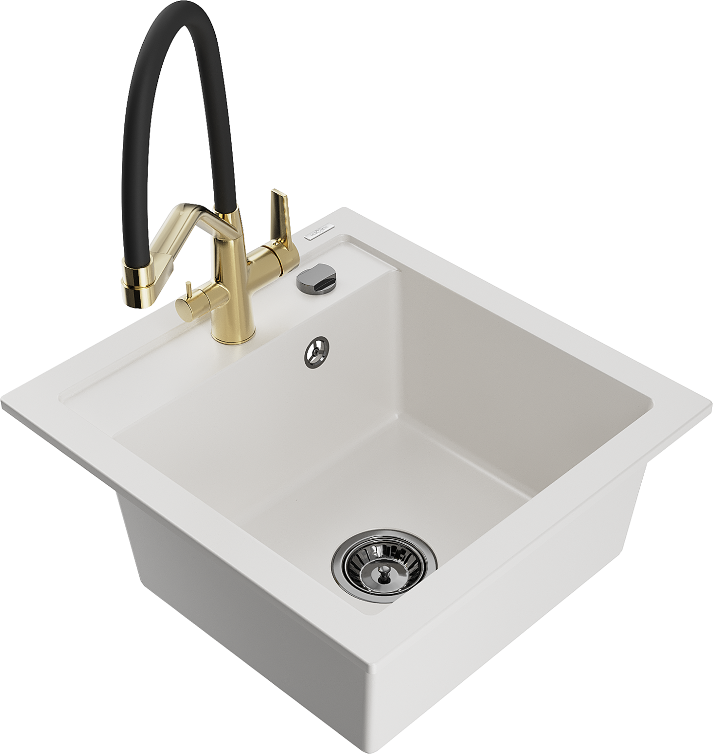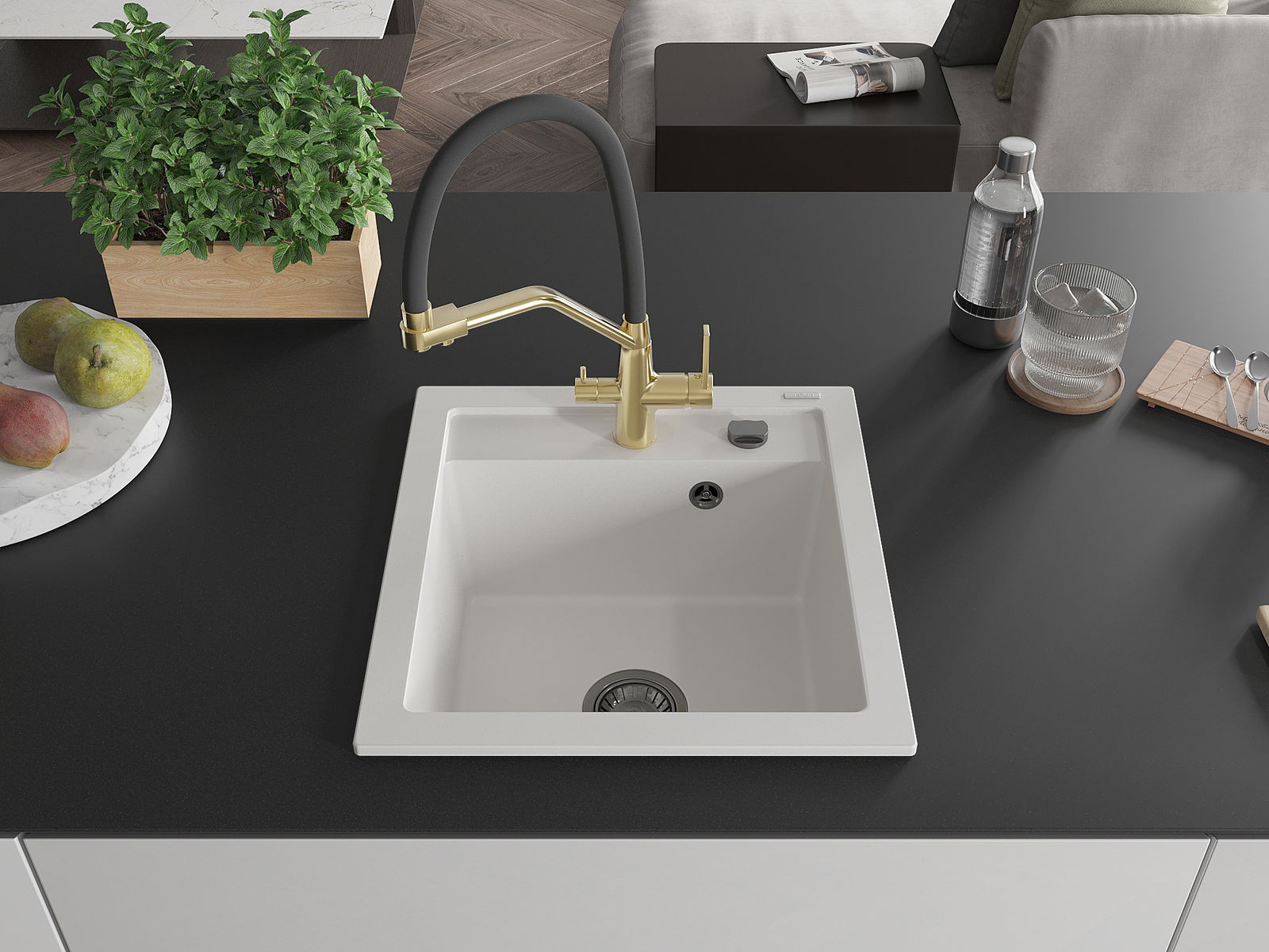 Mexen Vito évier en granit 1 cuve avec mitigeur de cuisine Duo, blanc - 6503-20-671701-57-B