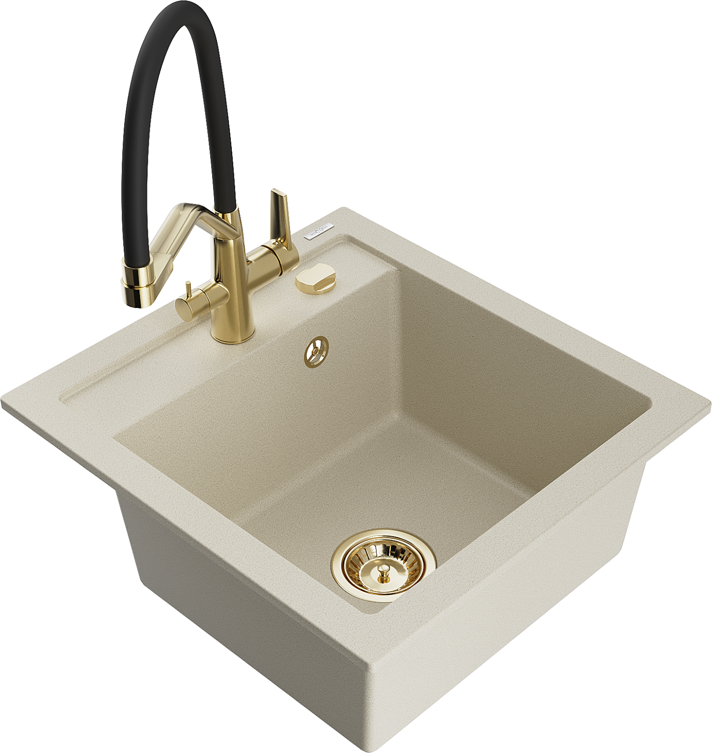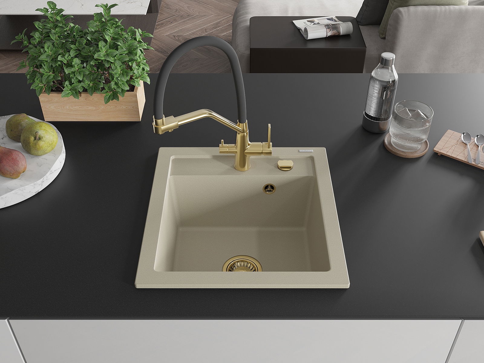 Mexen Vito évier en granit 1 bac avec robinet de cuisine Duo, beige - 6503-69-671701-57-G