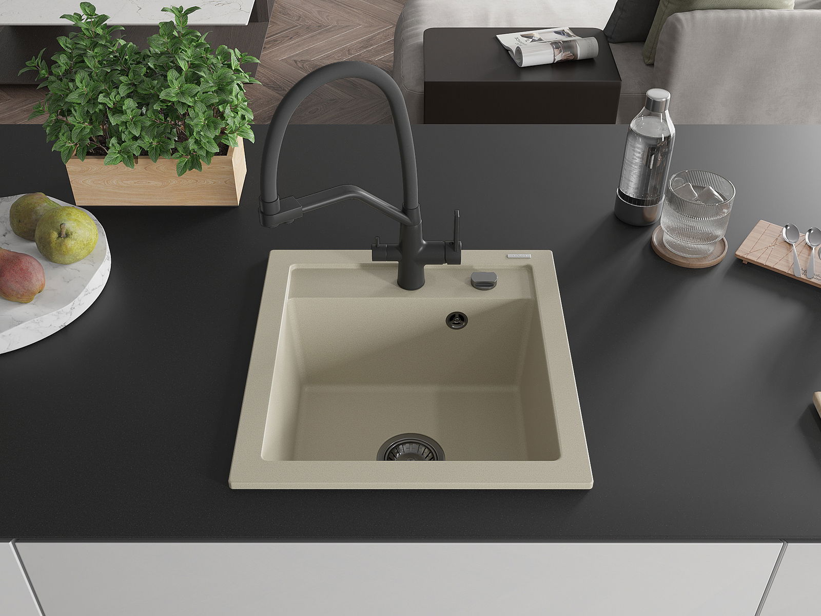 L'évier est fabriqué en granit de haute qualité. Il constitue un complément élégant et surtout pratique pour toute cuisine, quel que soit son style. La qualité et la durabilité du granit garantissent de nombreuses années d'utilisation.