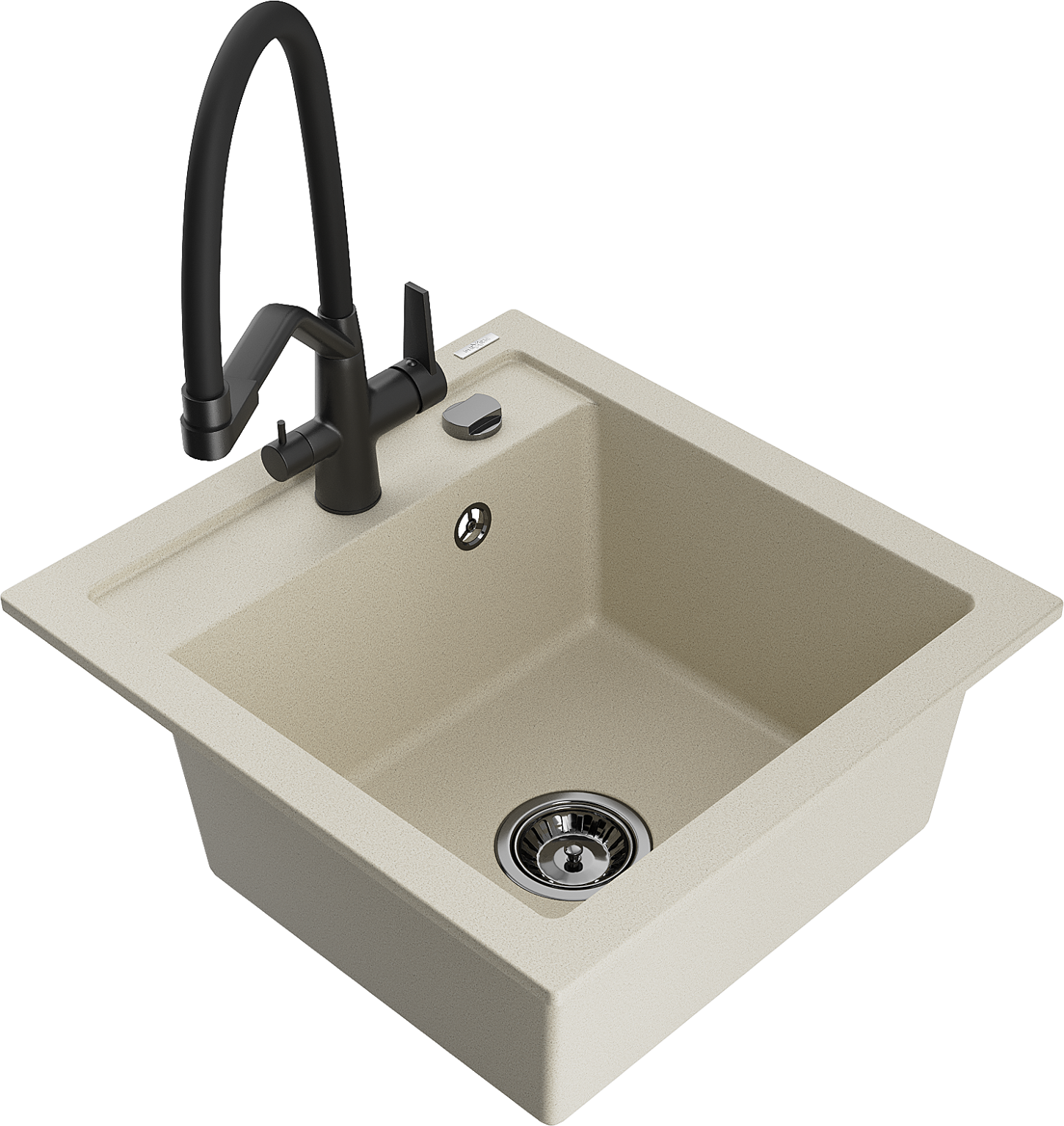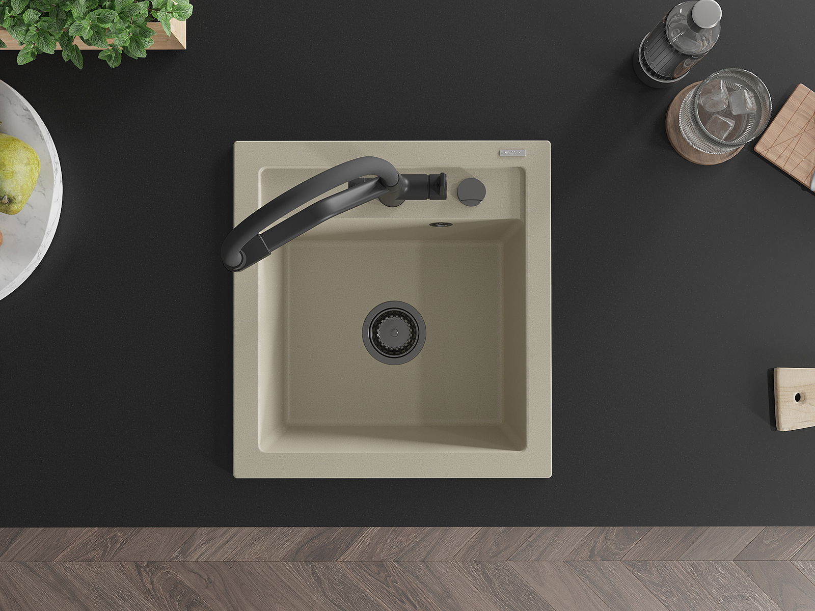 Mexen Vito évier en granit 1 bac avec mitigeur de cuisine Duo, beige - 6503-69-671701-70-B