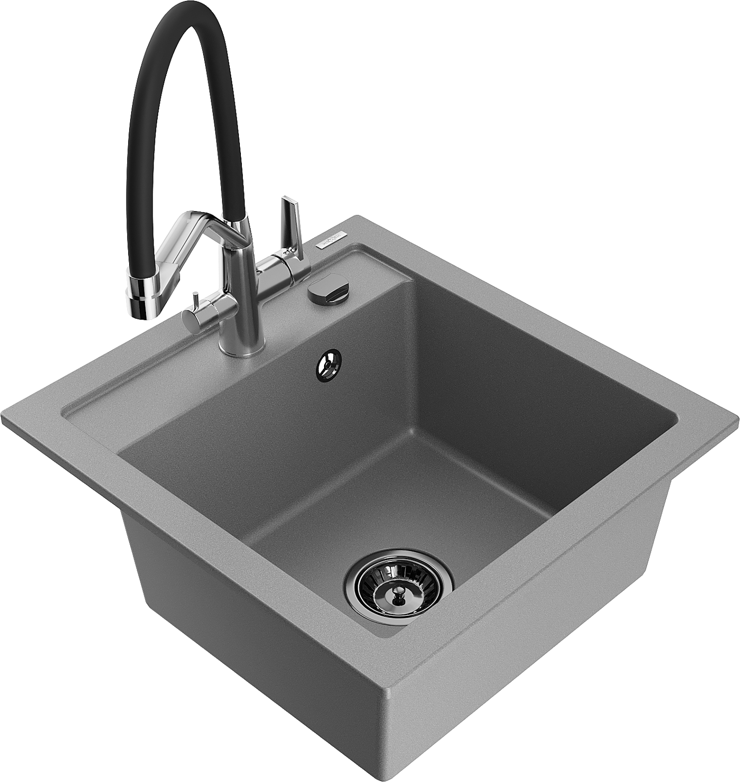Mexen Vito évier de cuisine en granit 1 bac avec robinet Duo, gris - 6503-71-671701-07-B