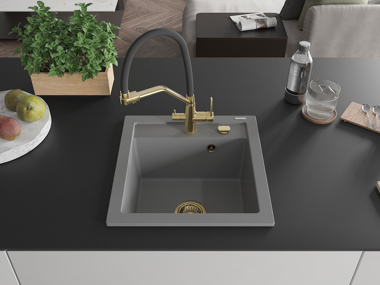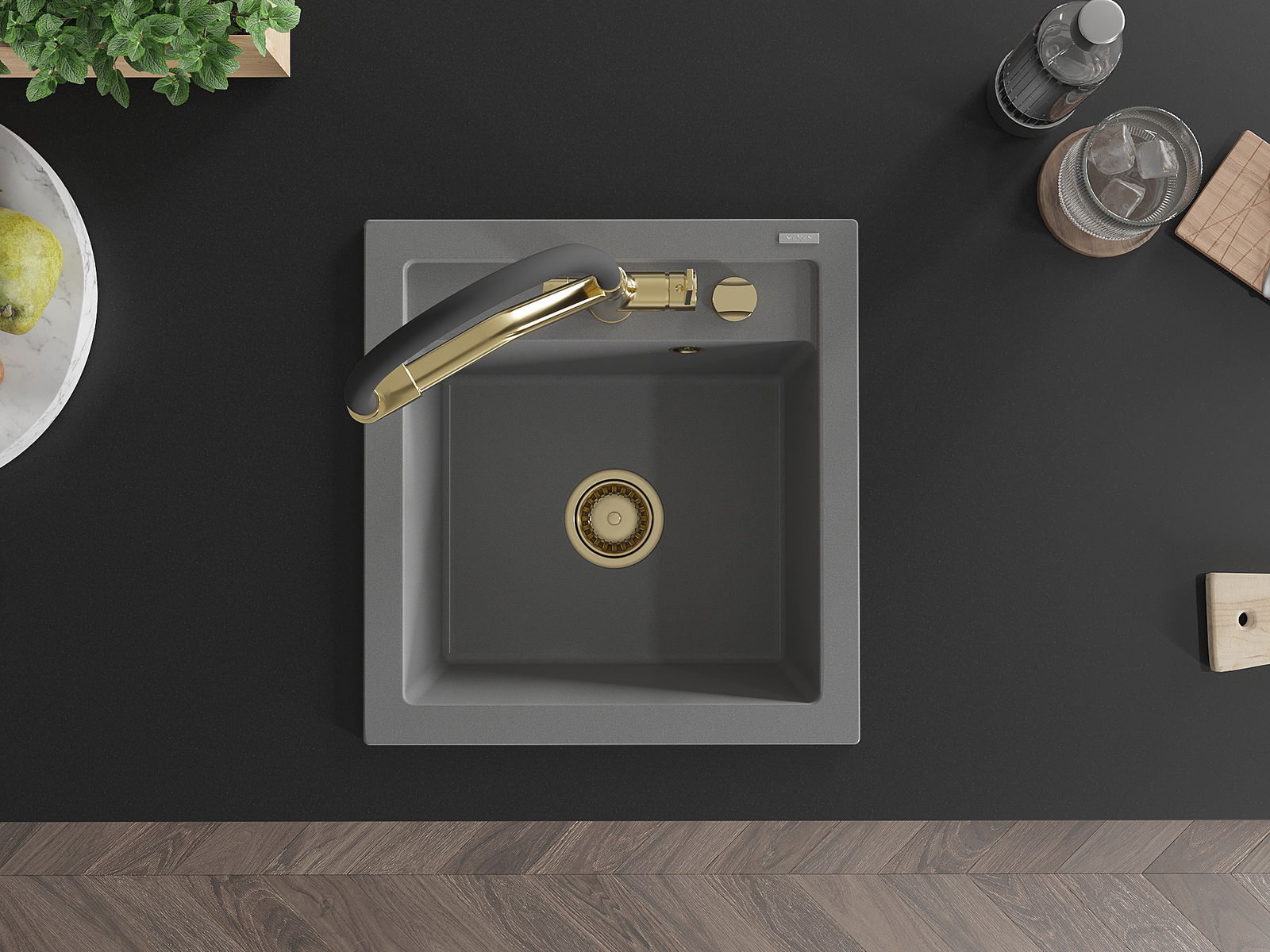 Mexen Vito évier de cuisine en granit 1 bac avec robinet de cuisine Duo, gris - 6503-71-671701-57-G