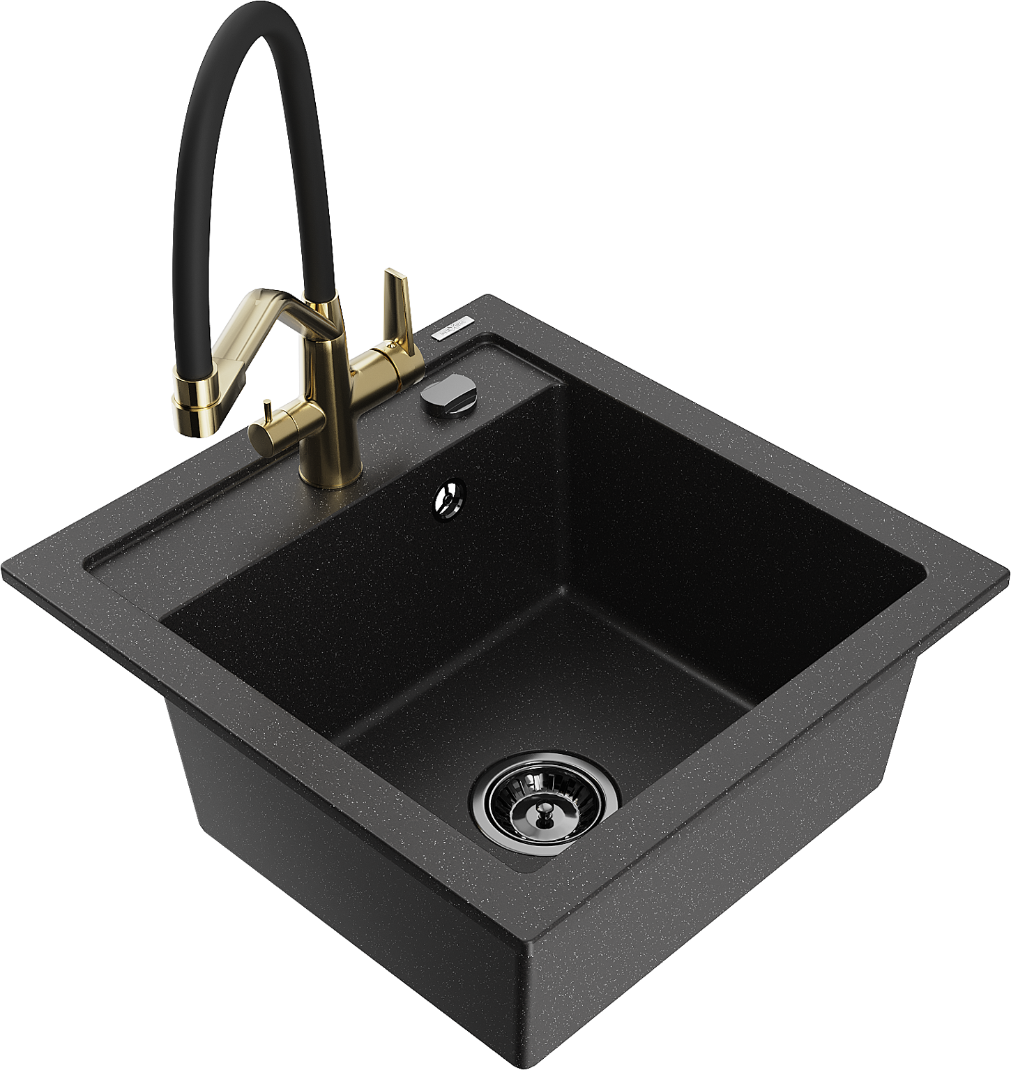 Mexen Vito évier en granit 1 bac avec robinet de cuisine Duo, noir/métallisé argenté - 6503-73-671701-57-B