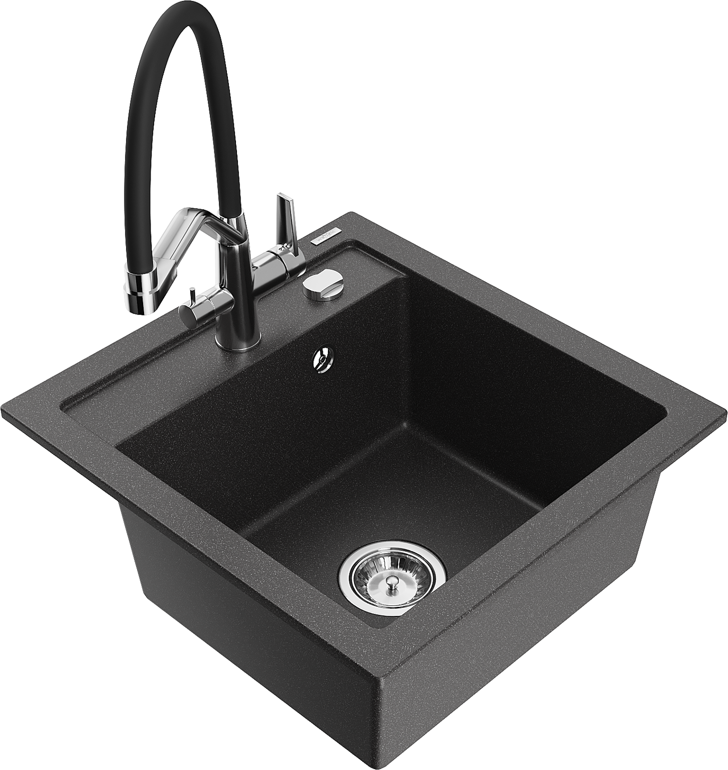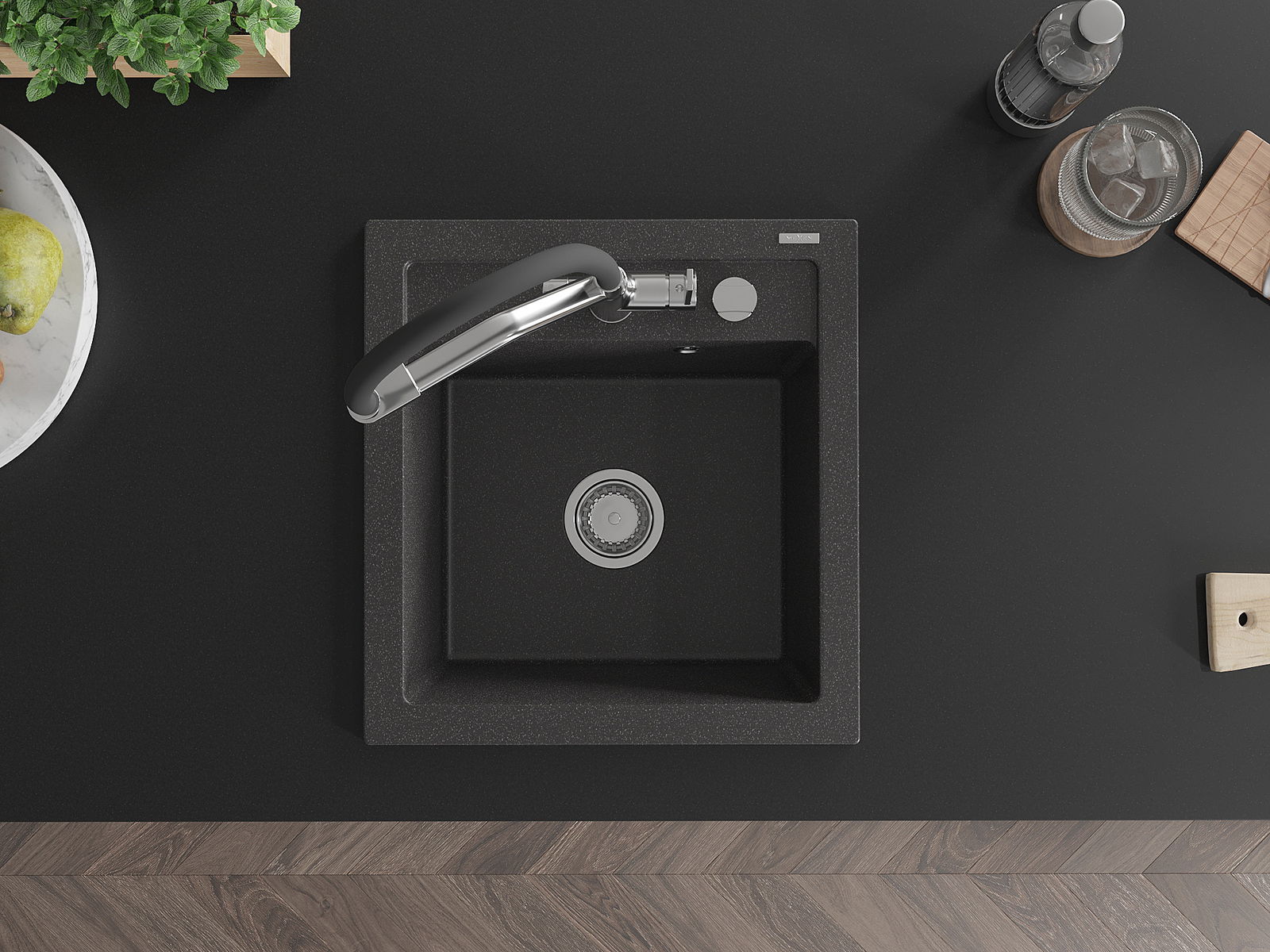 Mexen Vito évier en granit 1 bac avec mitigeur de cuisine Duo, noir moucheté - 6503-76-671701-07