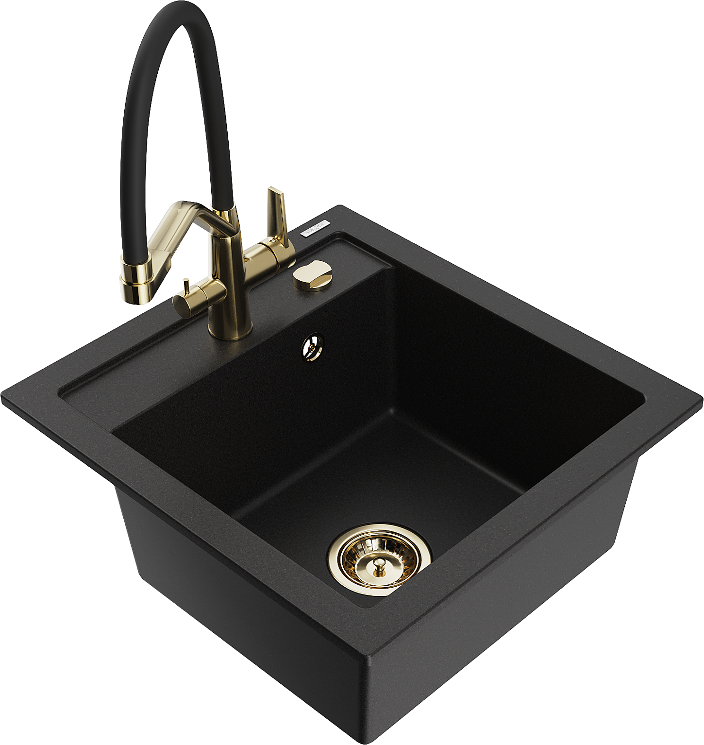 Mexen Vito évier en granit 1-bassin avec robinet de cuisine Duo, noir - 6503-77-671701-57-G