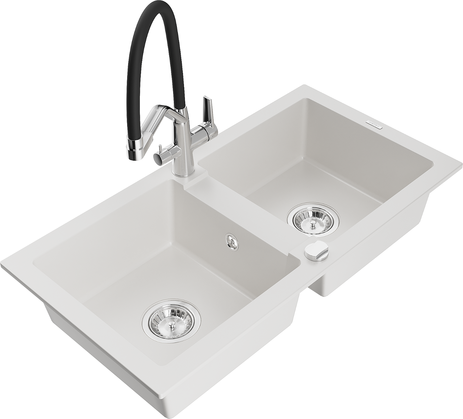 Mexen Mario évier en granit à 2 bacs avec robinet de cuisine Duo, blanc - 6504-20-671701-07