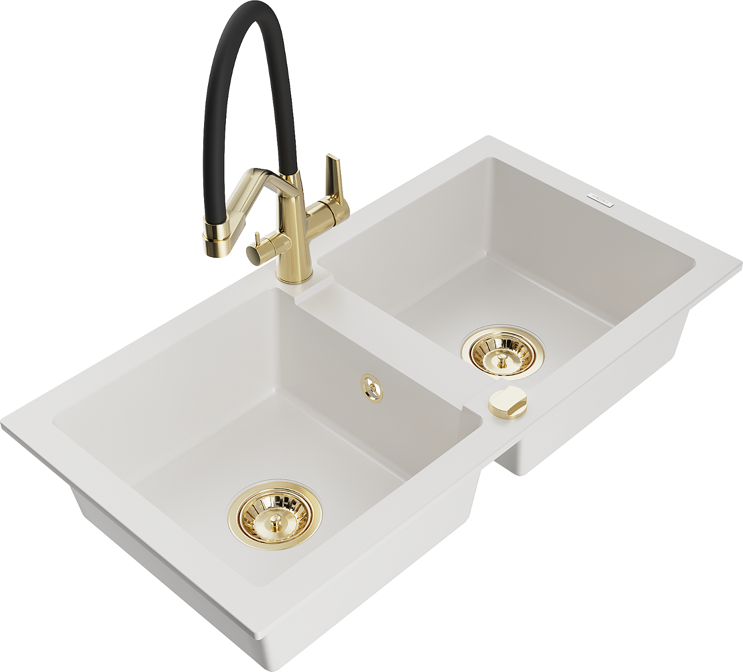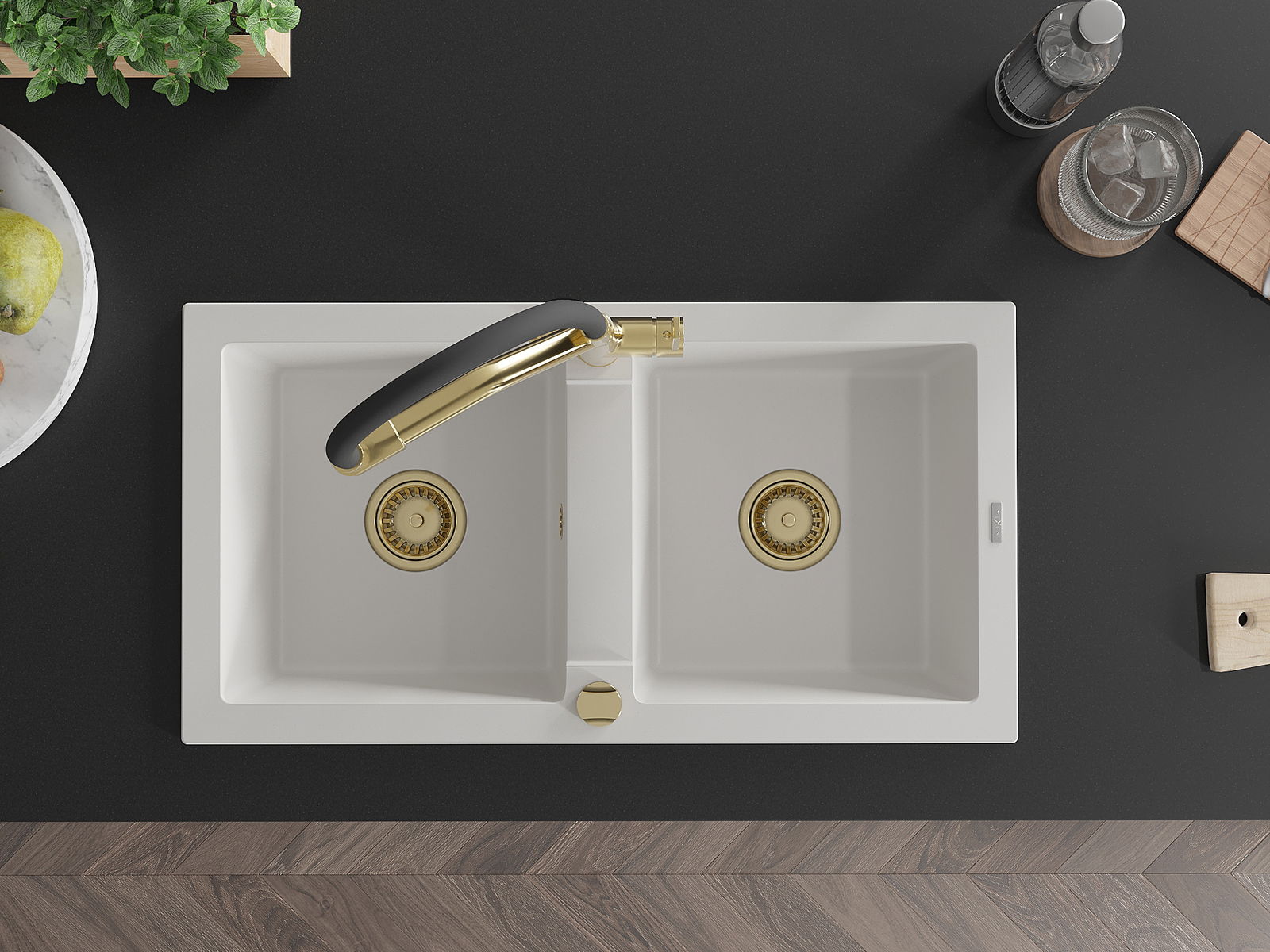 Mexen Mario évier en granit à 2 bacs avec robinet de cuisine Duo, blanc - 6504-20-671701-57-G