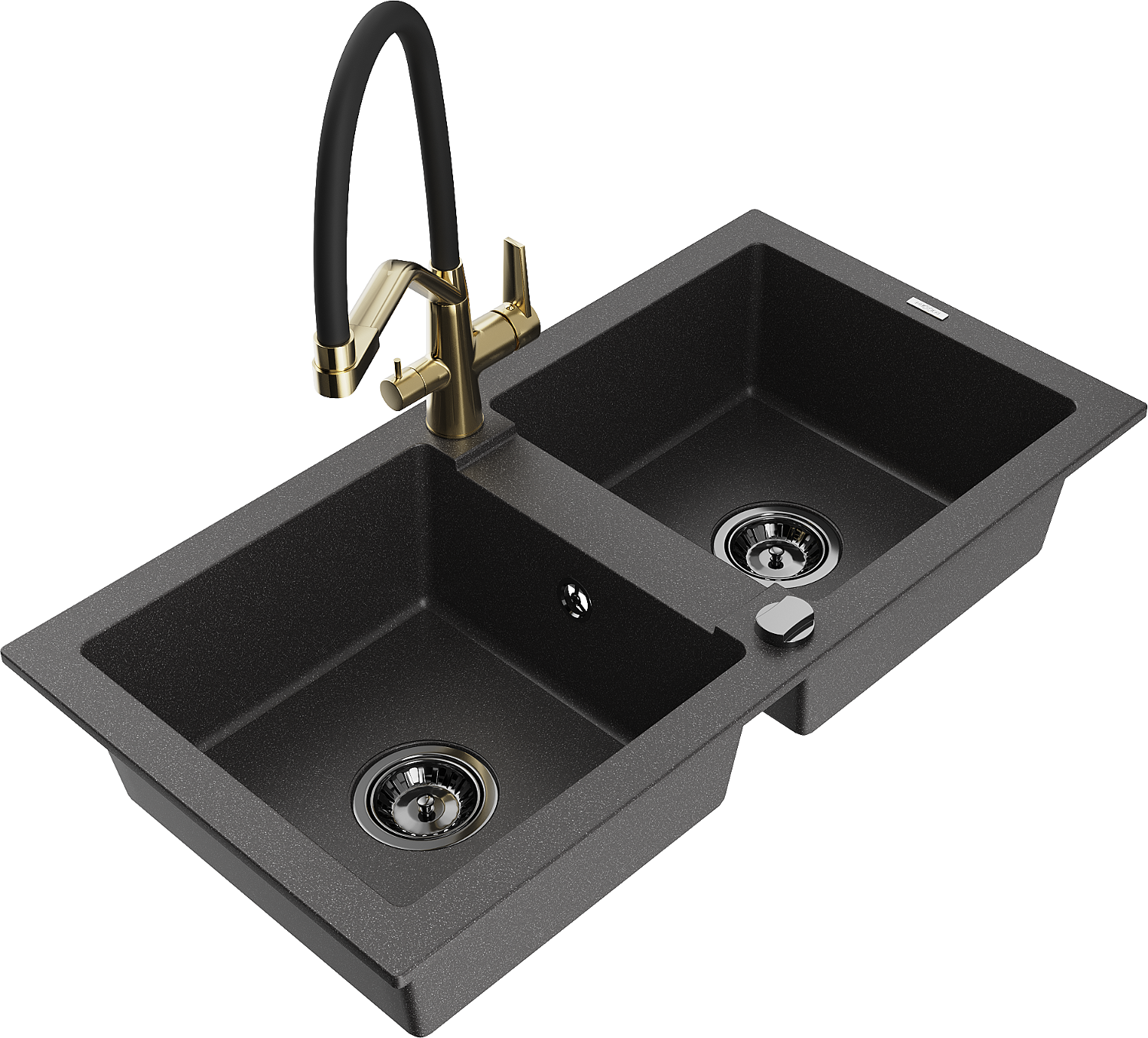 Mexen Mario évier en granit à 2 bacs avec robinet de cuisine Duo, noir moucheté - 6504-76-671701-57-B