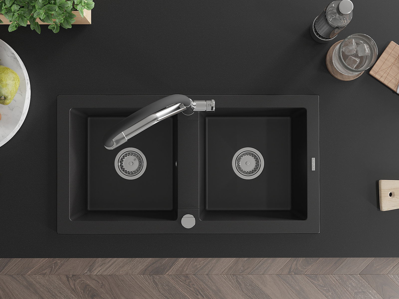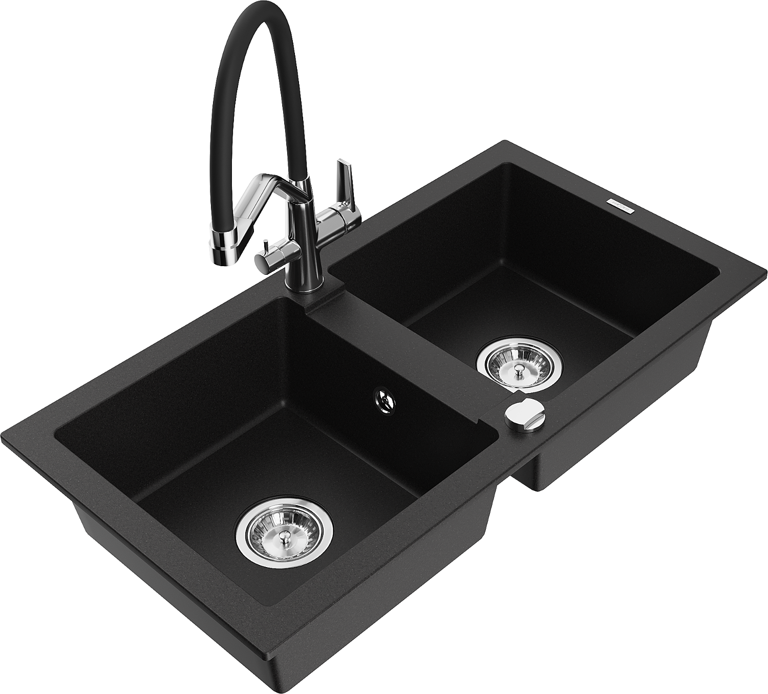 Mexen Mario évier en granit 2 bacs avec robinet de cuisine Duo, noir - 6504-77-671701-07