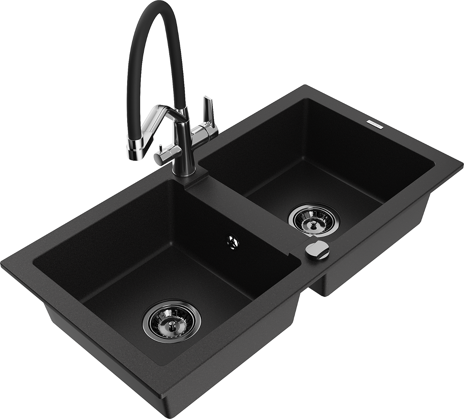 Mexen Mario évier de cuisine en granit 2 bacs avec robinetterie Duo, noir - 6504-77-671701-07-B