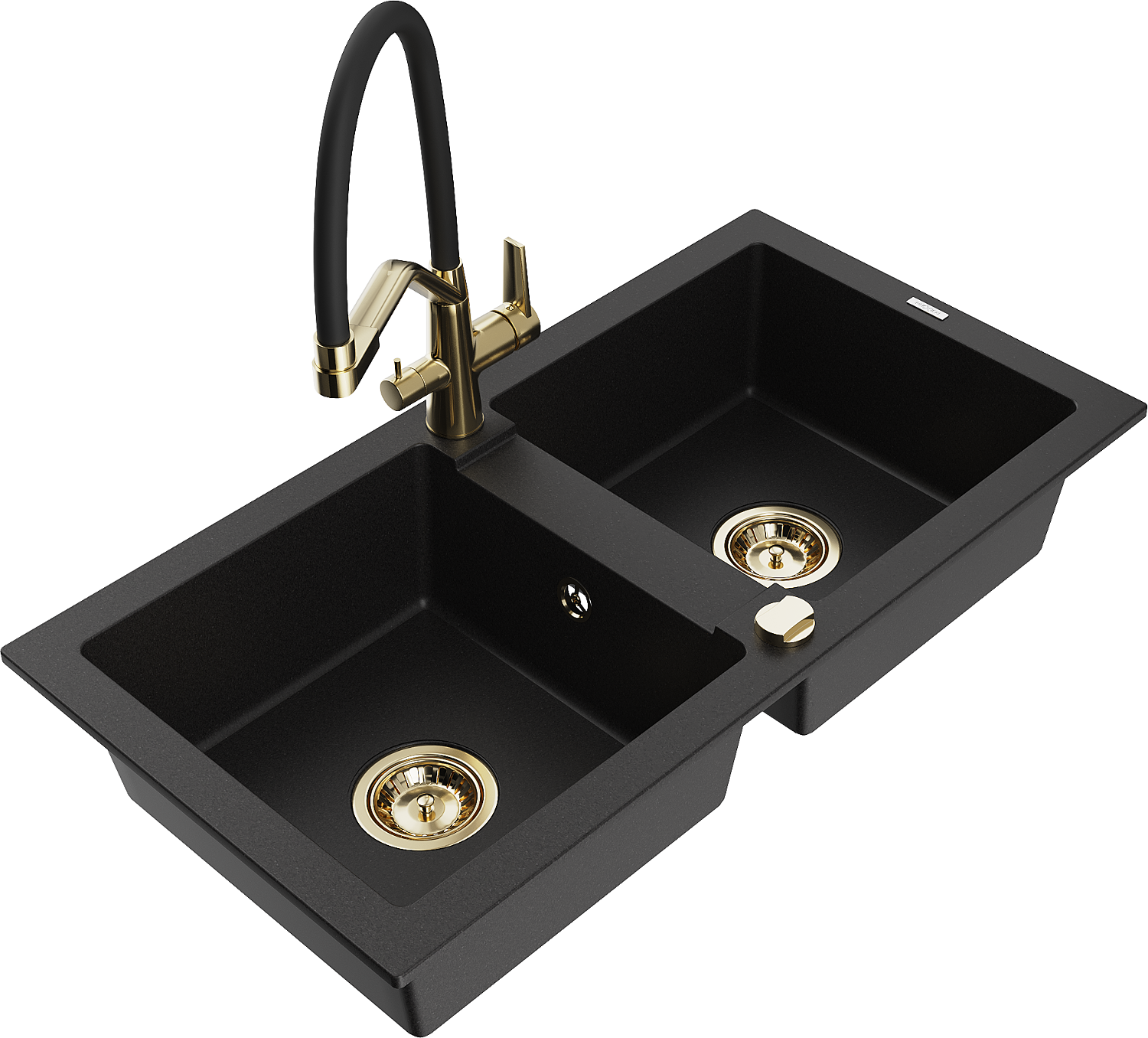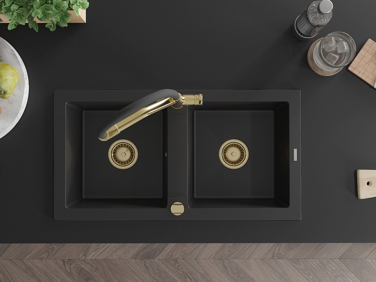 Mexen Mario évier en granit à 2 bacs avec mitigeur de cuisine Duo, noir - 6504-77-671701-57-G
