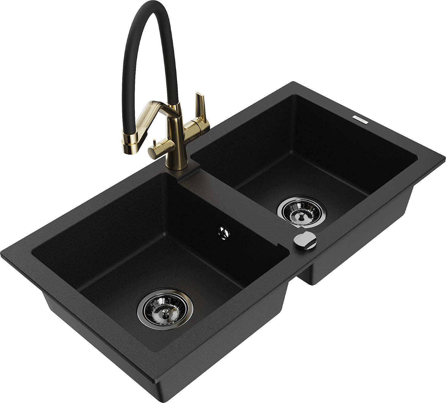 Mexen Mario évier en granit à 2 bacs avec robinet de cuisine Duo, noir - 6504-77-671701-57-B