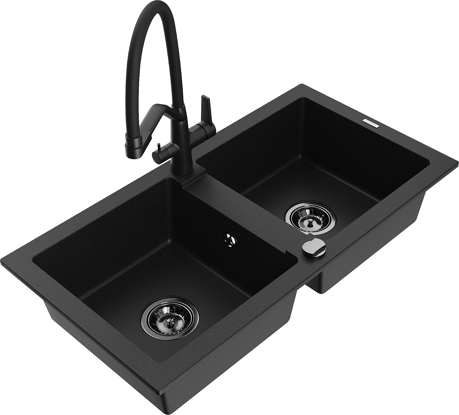 Mexen Mario évier en granit 2 bacs avec robinet de cuisine Duo, noir - 6504-77-671701-70-B