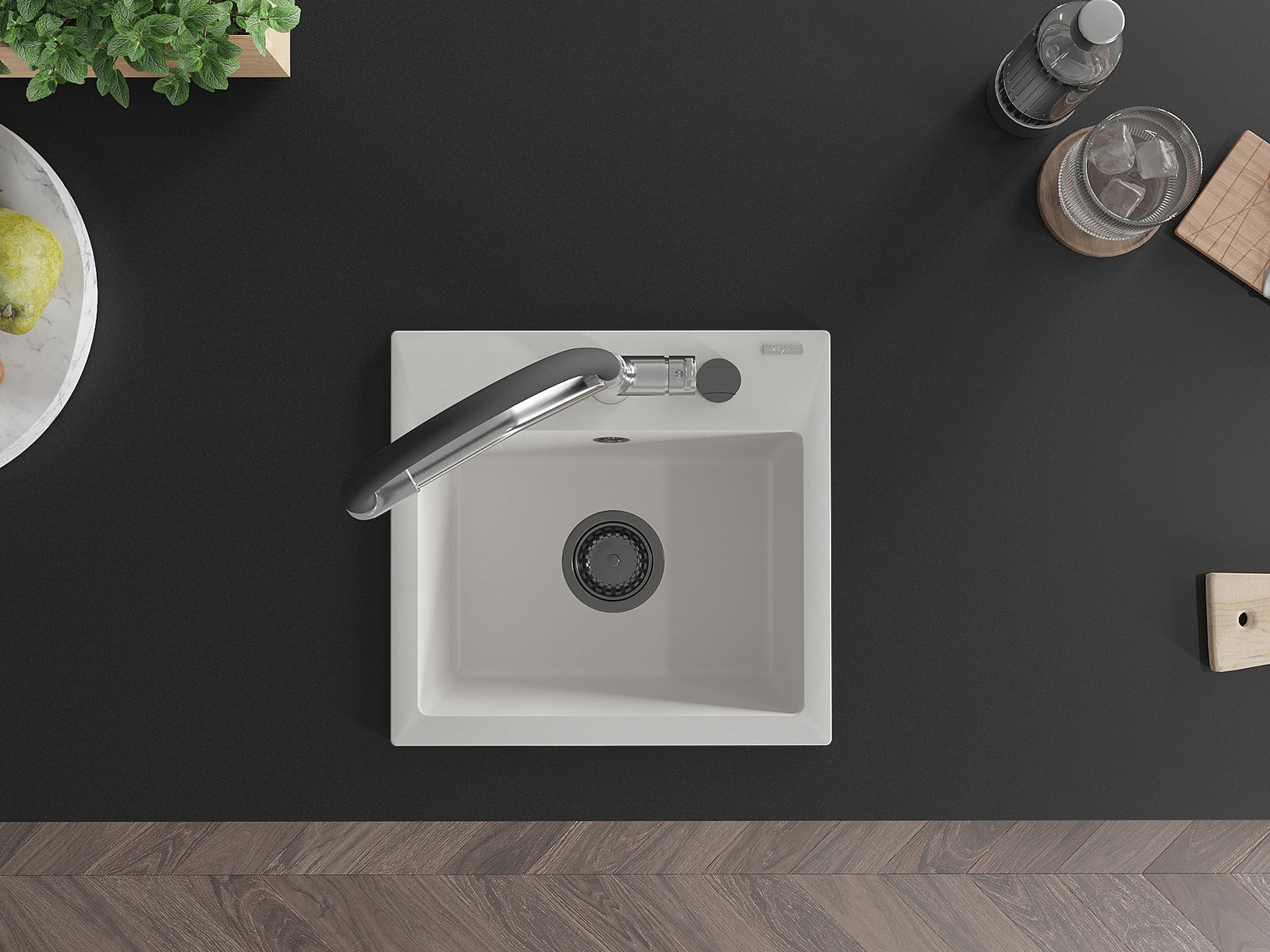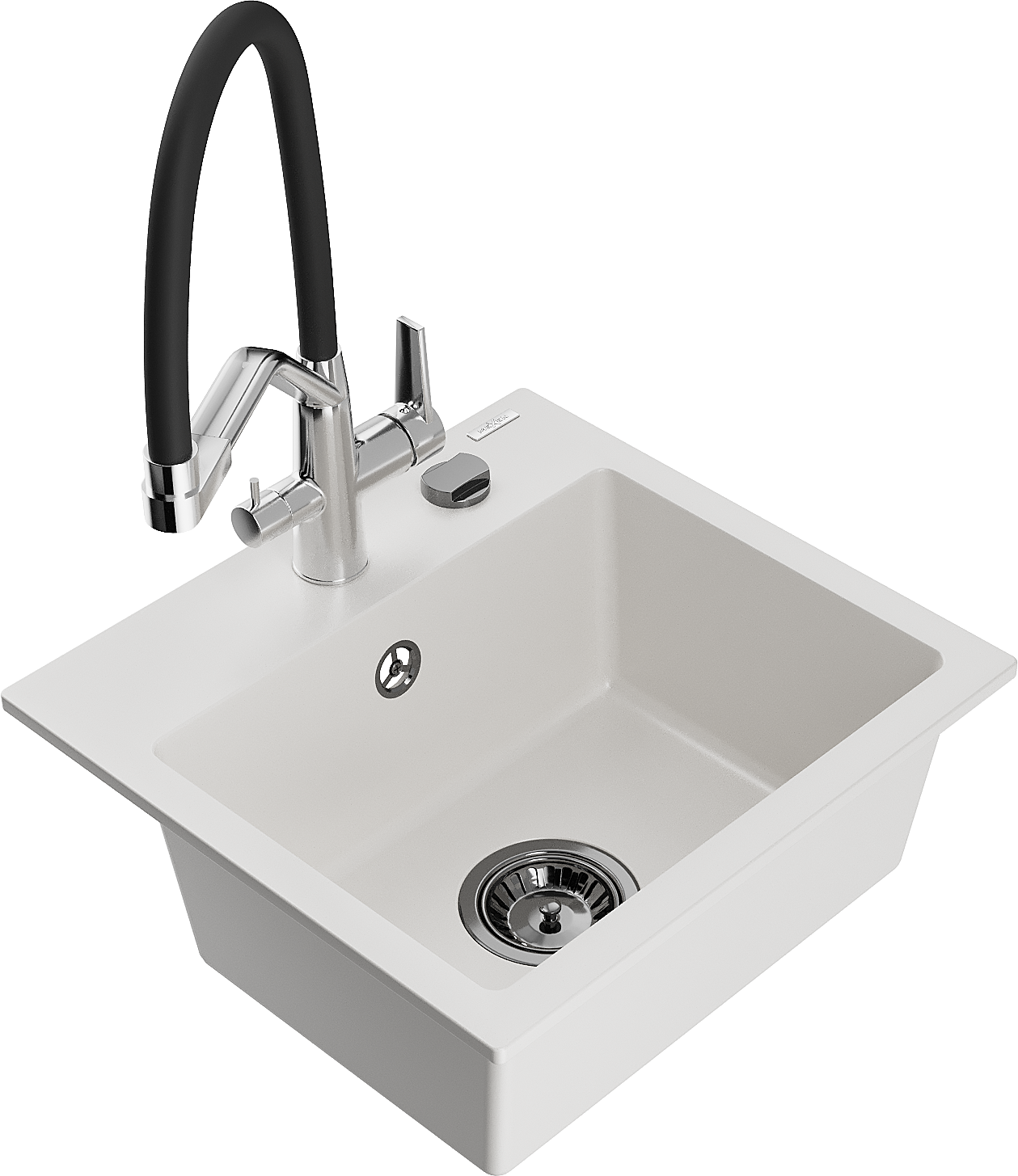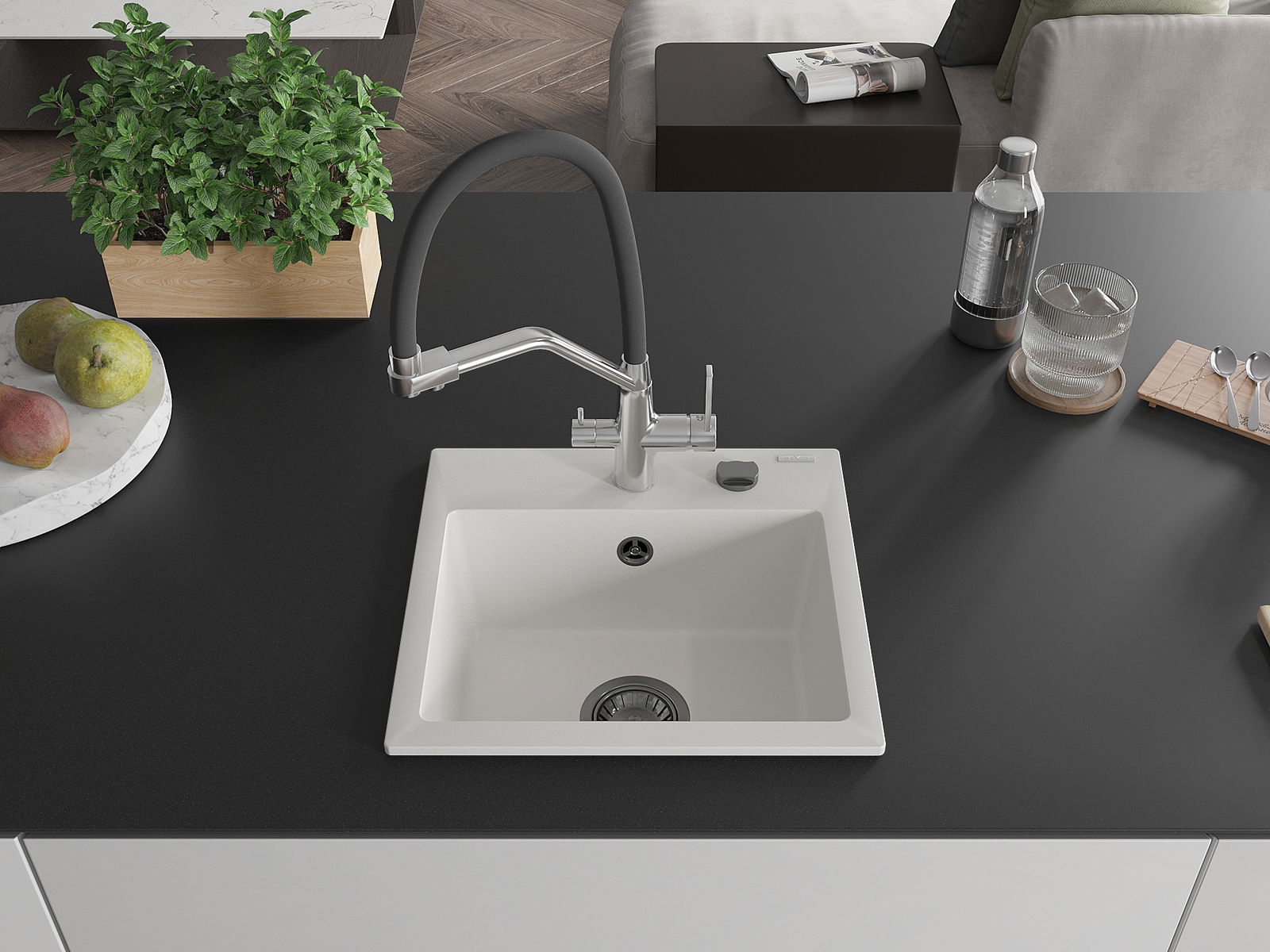 Mexen Milo évier de cuisine en granit 1 bac avec robinet Duo, blanc - 6505-20-671701-07-B