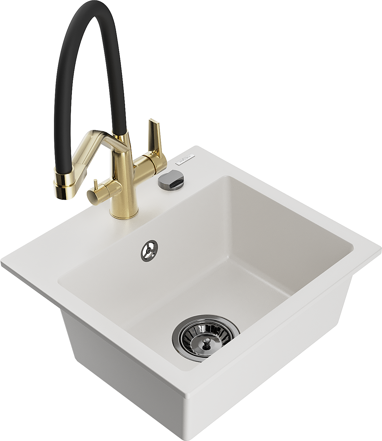 Mexen Milo évier en granit 1-bac avec robinet de cuisine Duo, blanc - 6505-20-671701-57-B