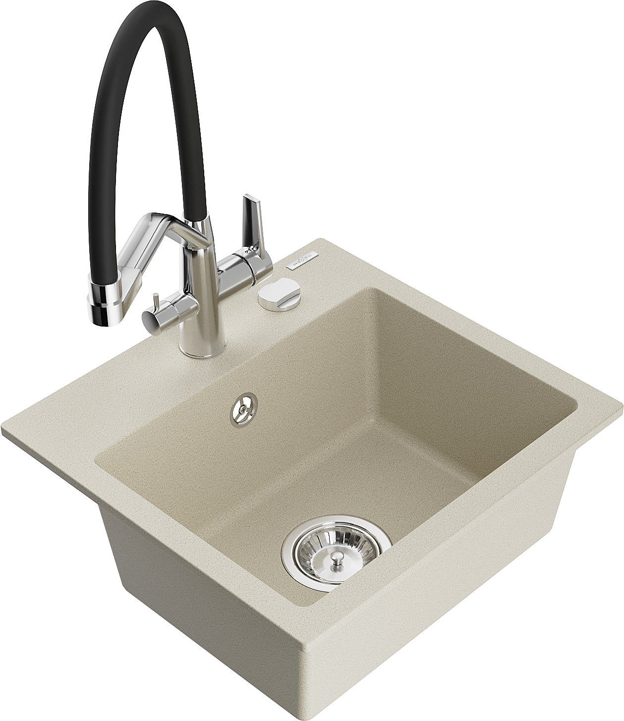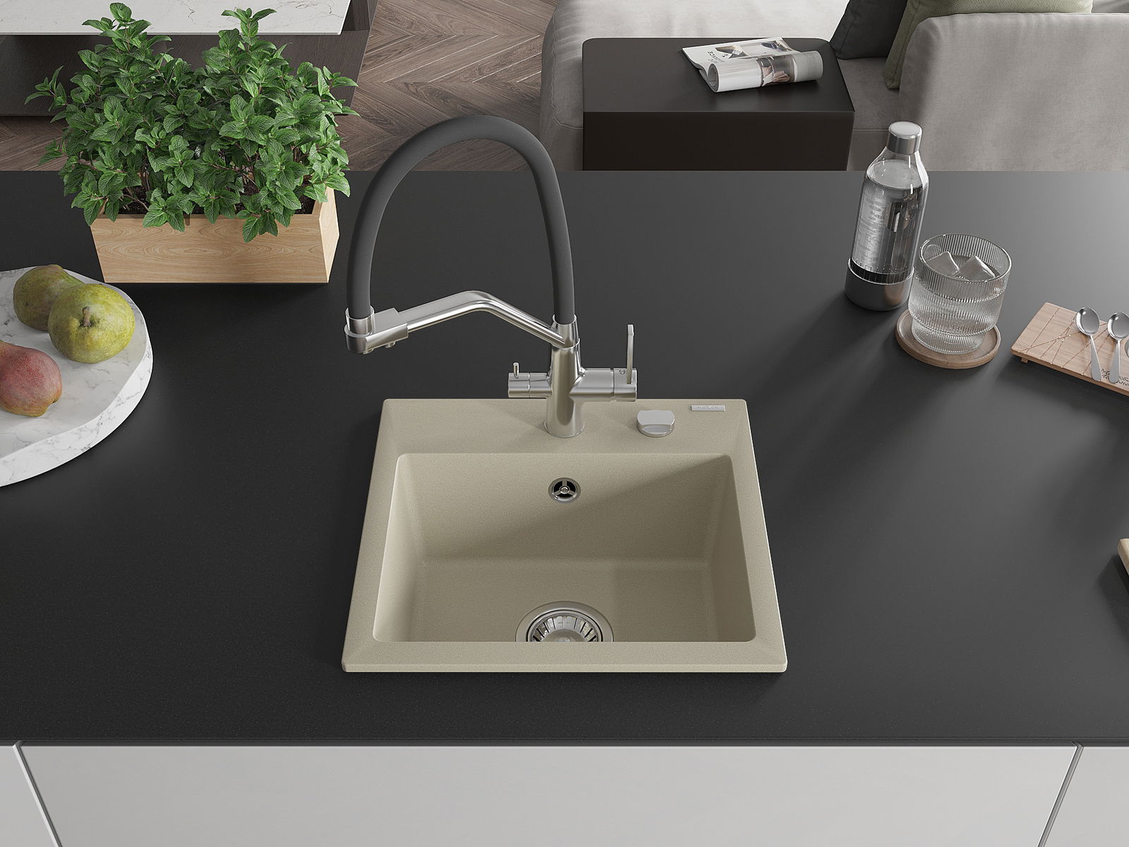 Mexen Milo évier en granit à 1 bac avec robinet de cuisine Duo, beige - 6505-69-671701-07