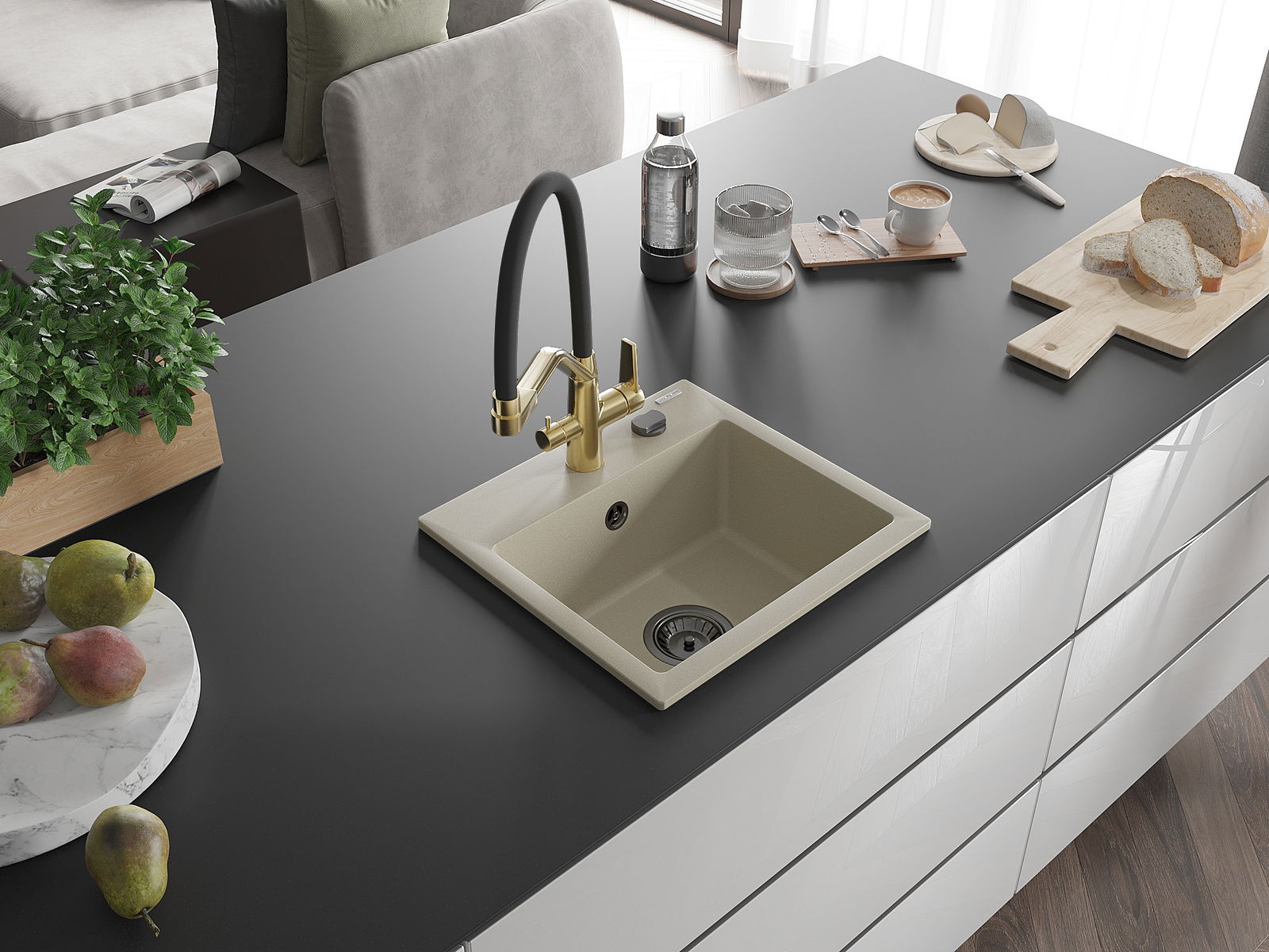 L'évier a été fabriqué en granit de haute qualité. Il constitue un complément élégant et surtout pratique pour chaque cuisine, quel que soit son style. La haute qualité et la durabilité du granit garantissent une utilisation de plusieurs années.