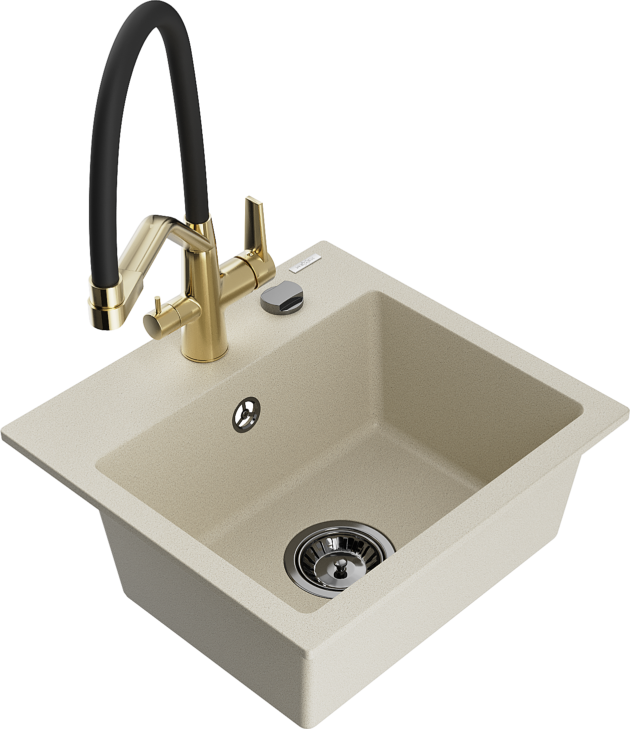 Mexen Milo évier en granit 1 bac avec robinet de cuisine Duo, beige - 6505-69-671701-57-B