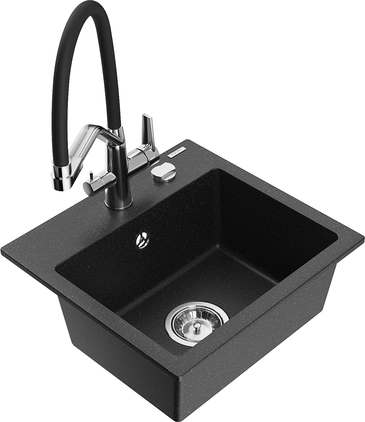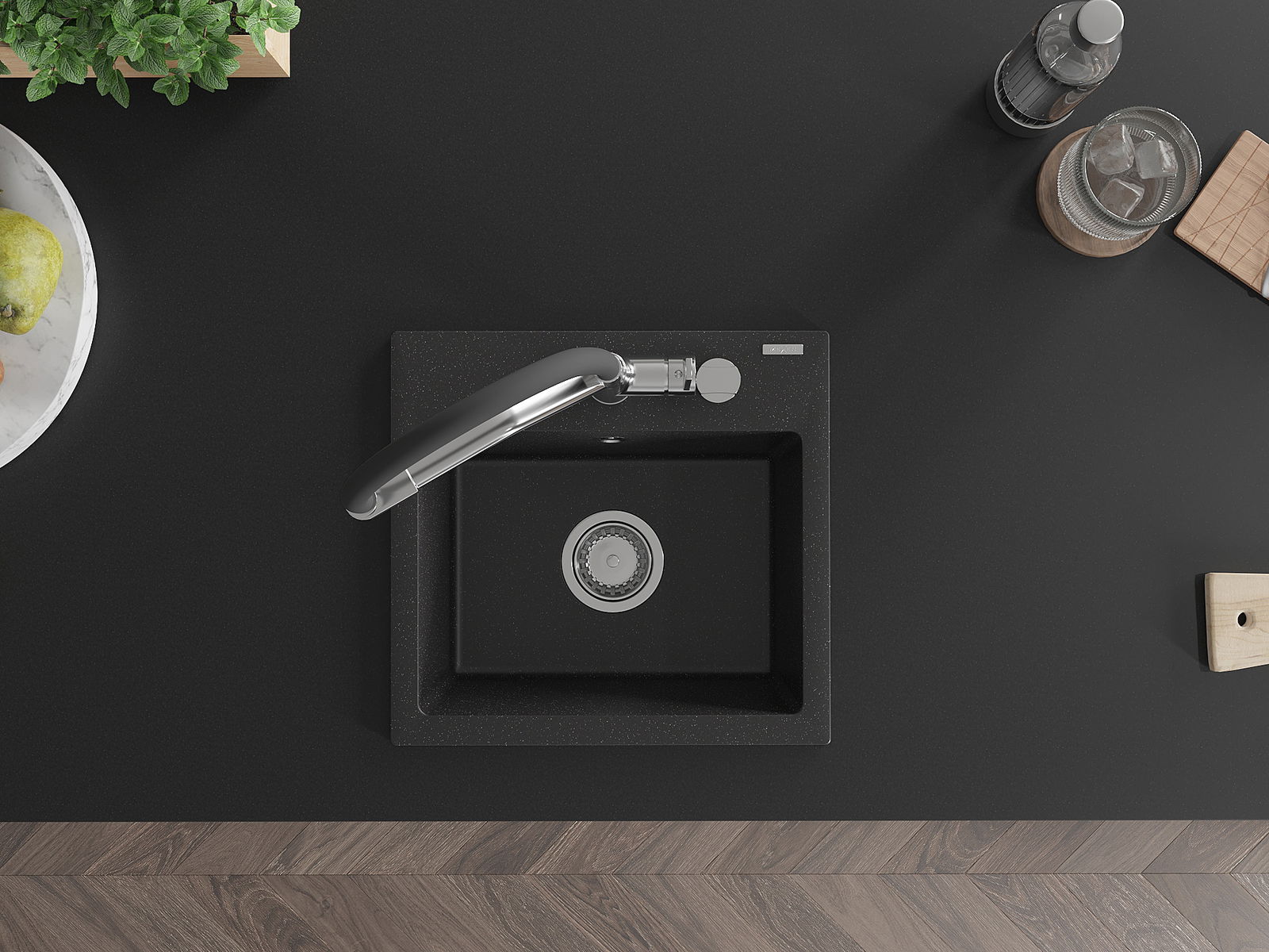 Mexen Milo évier en granit 1 bac avec robinet de cuisine Duo, noir/métallique argenté - 6505-73-671701-07