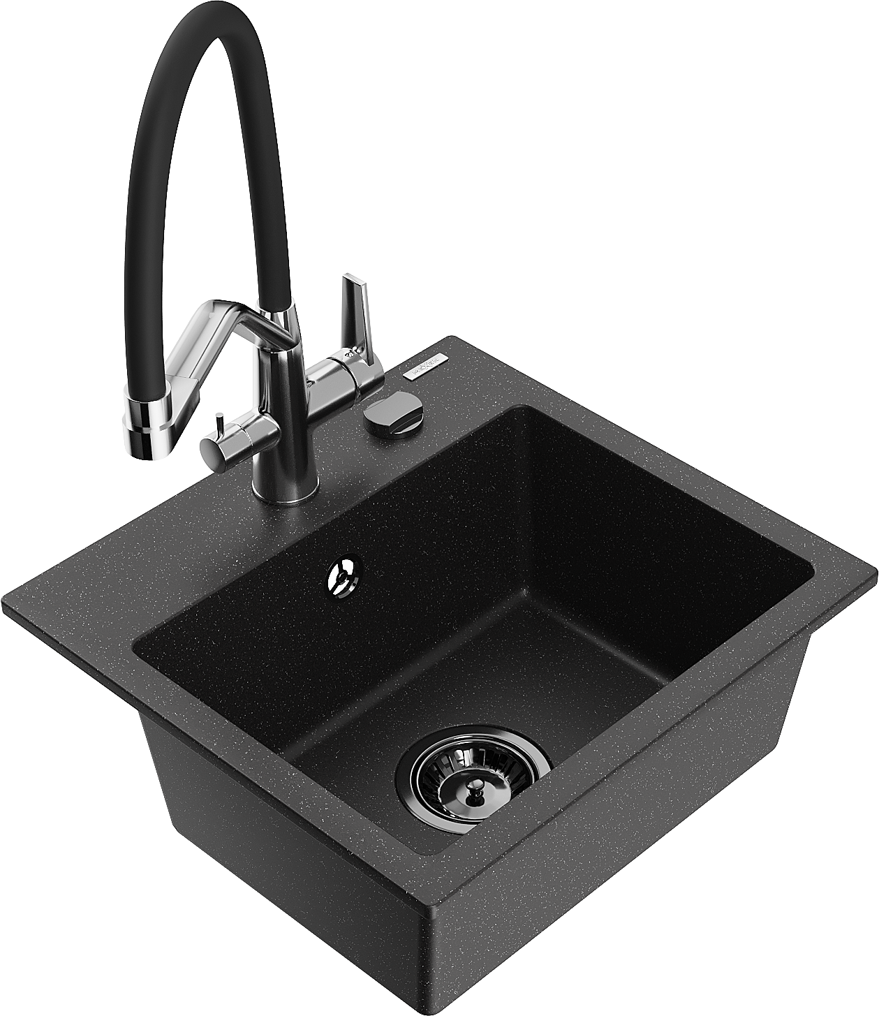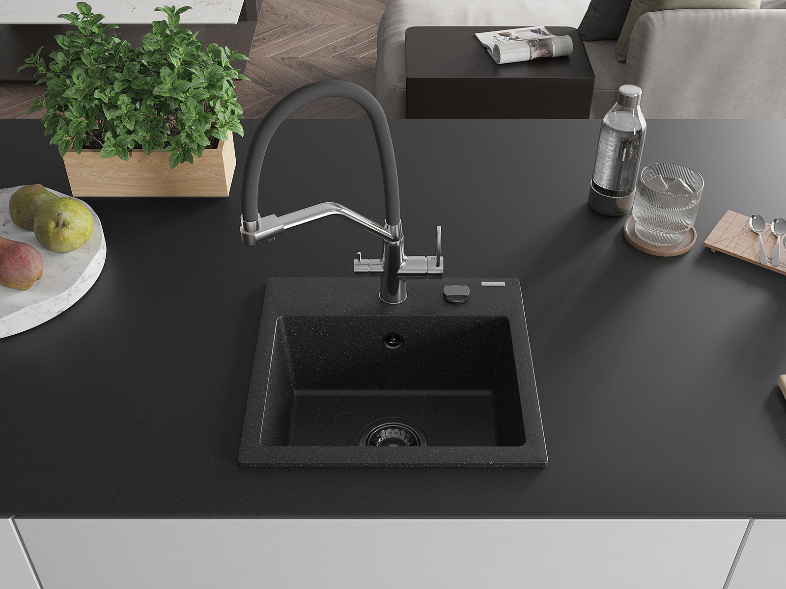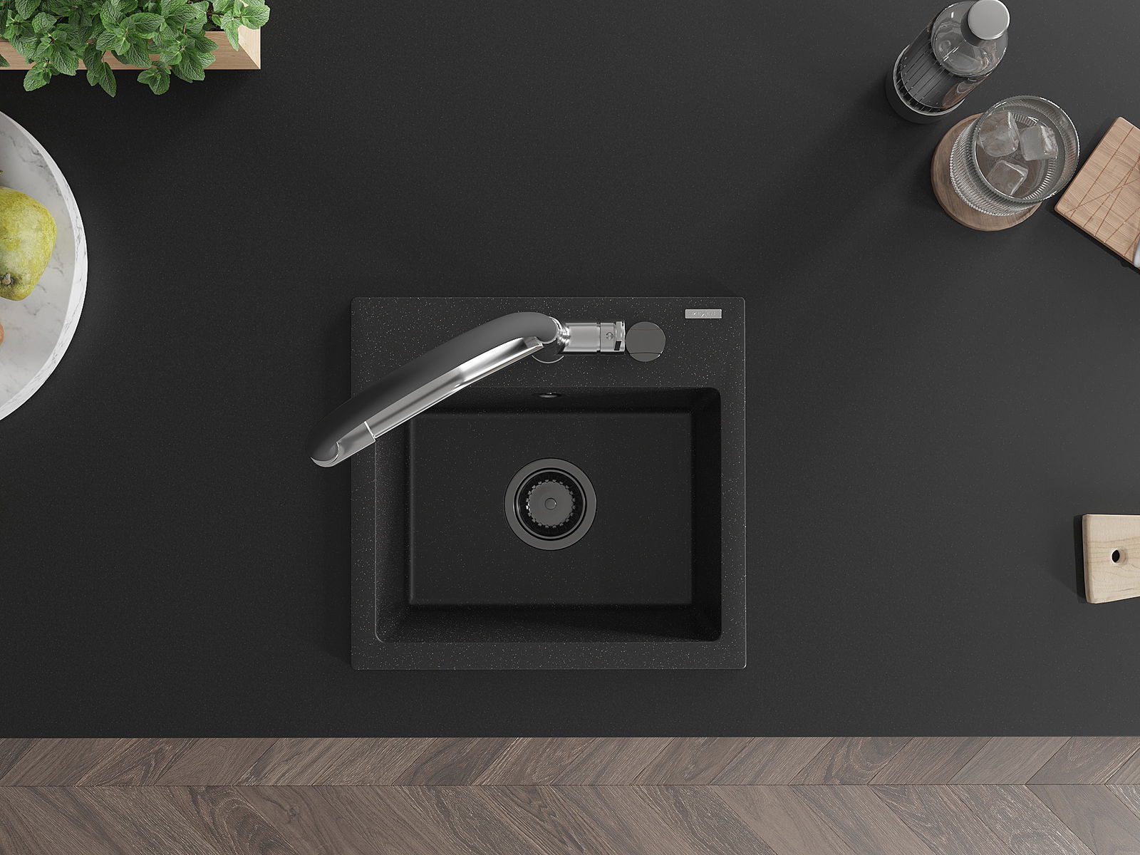 Mexen Milo évier de cuisine en granit 1 bac avec robinet de cuisine Duo, noir/argent métallique - 6505-73-671701-07-B