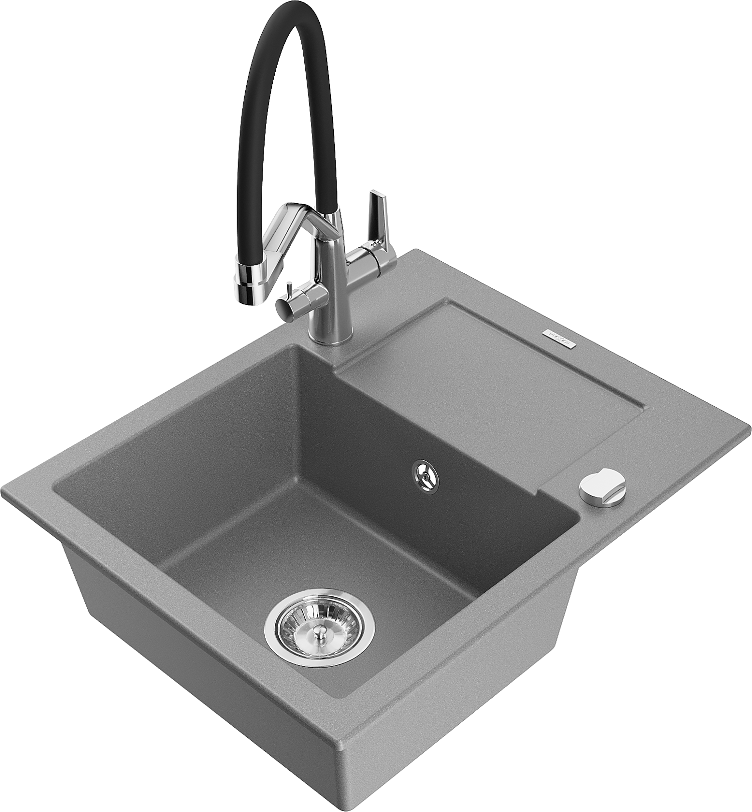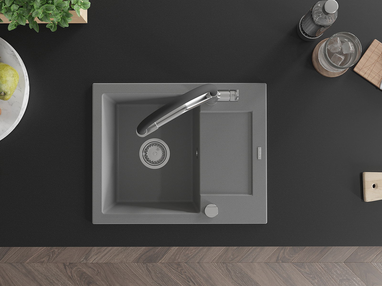 Mexen Enzo évier en granit 1 bac avec égouttoir et robinet de cuisine Duo, gris - 6506-71-671701-07