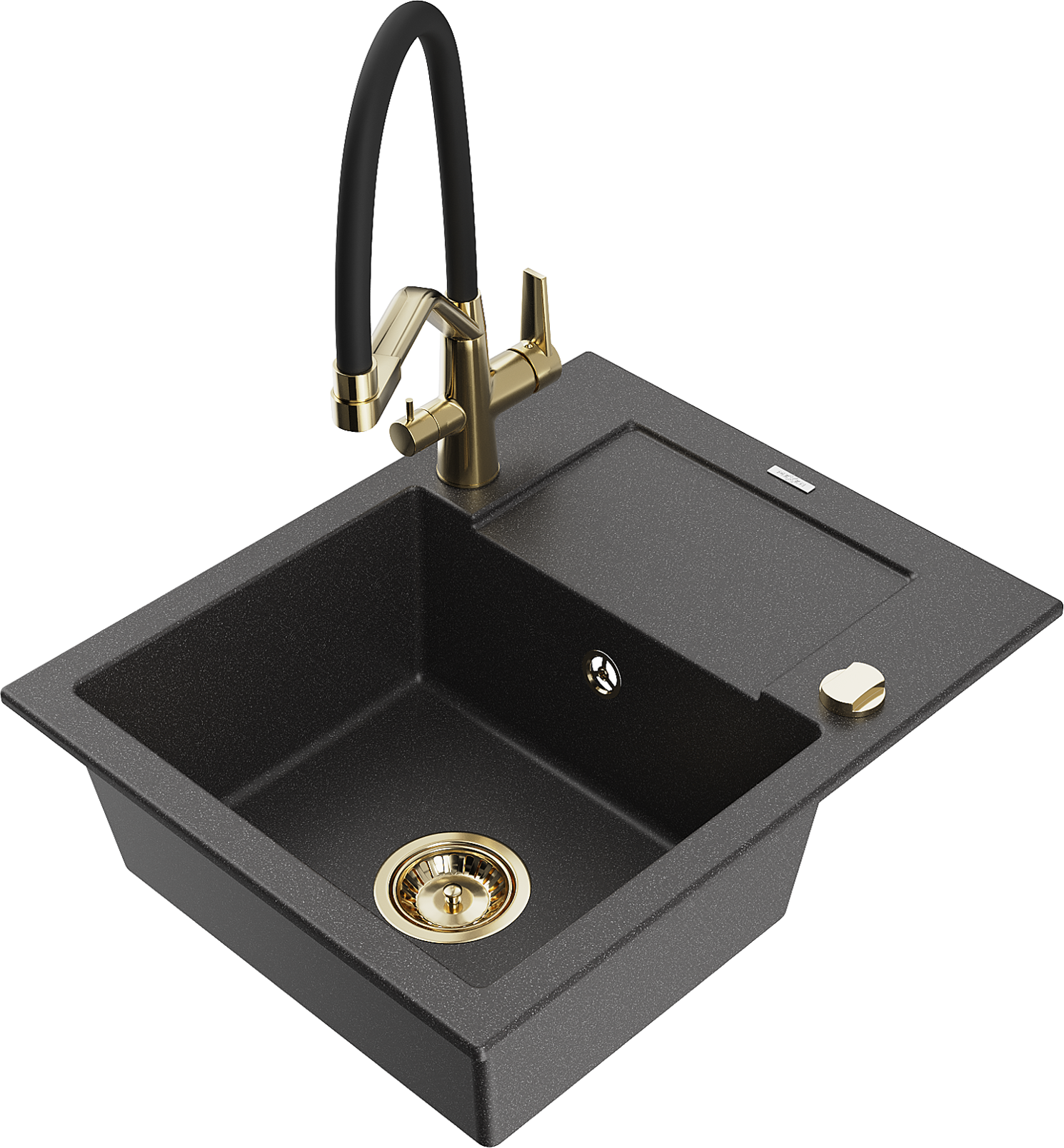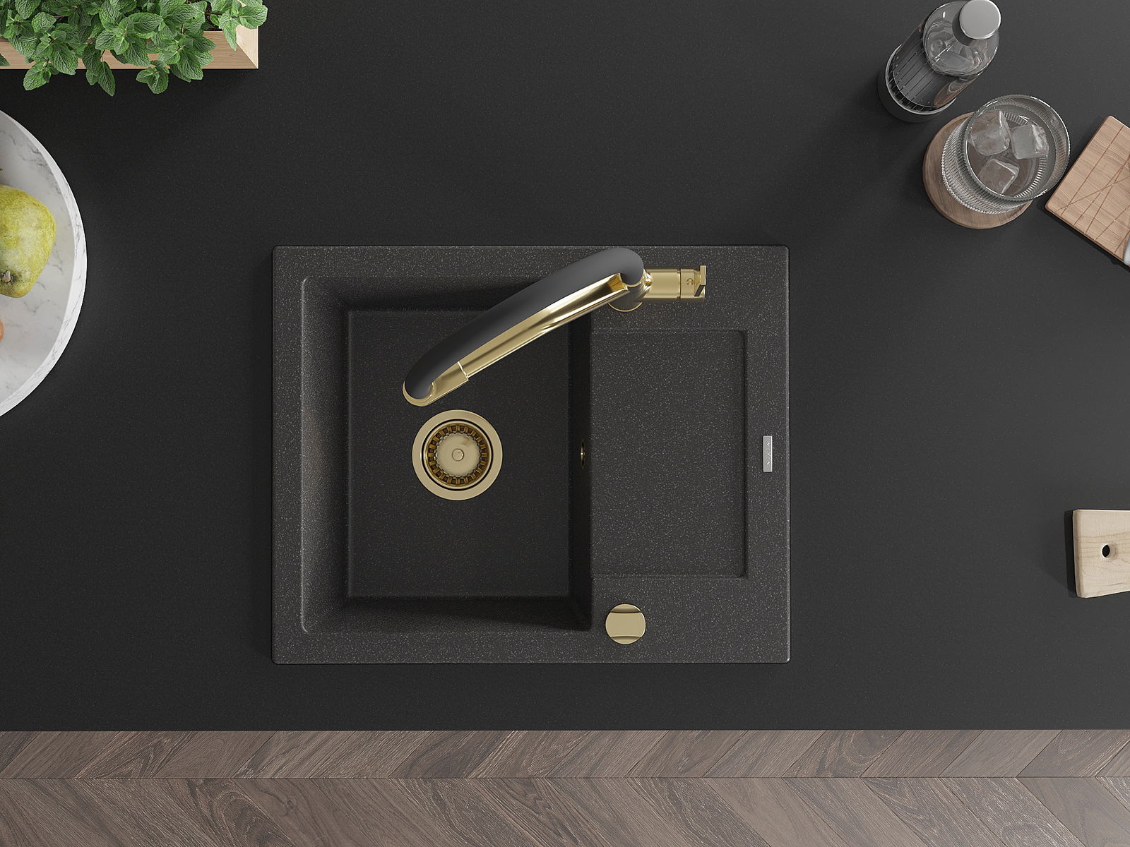 Mexen Enzo évier de cuisine en granit 1 bac avec égouttoir et robinet de cuisine Duo, noir moucheté - 6506-76-671701-57-G