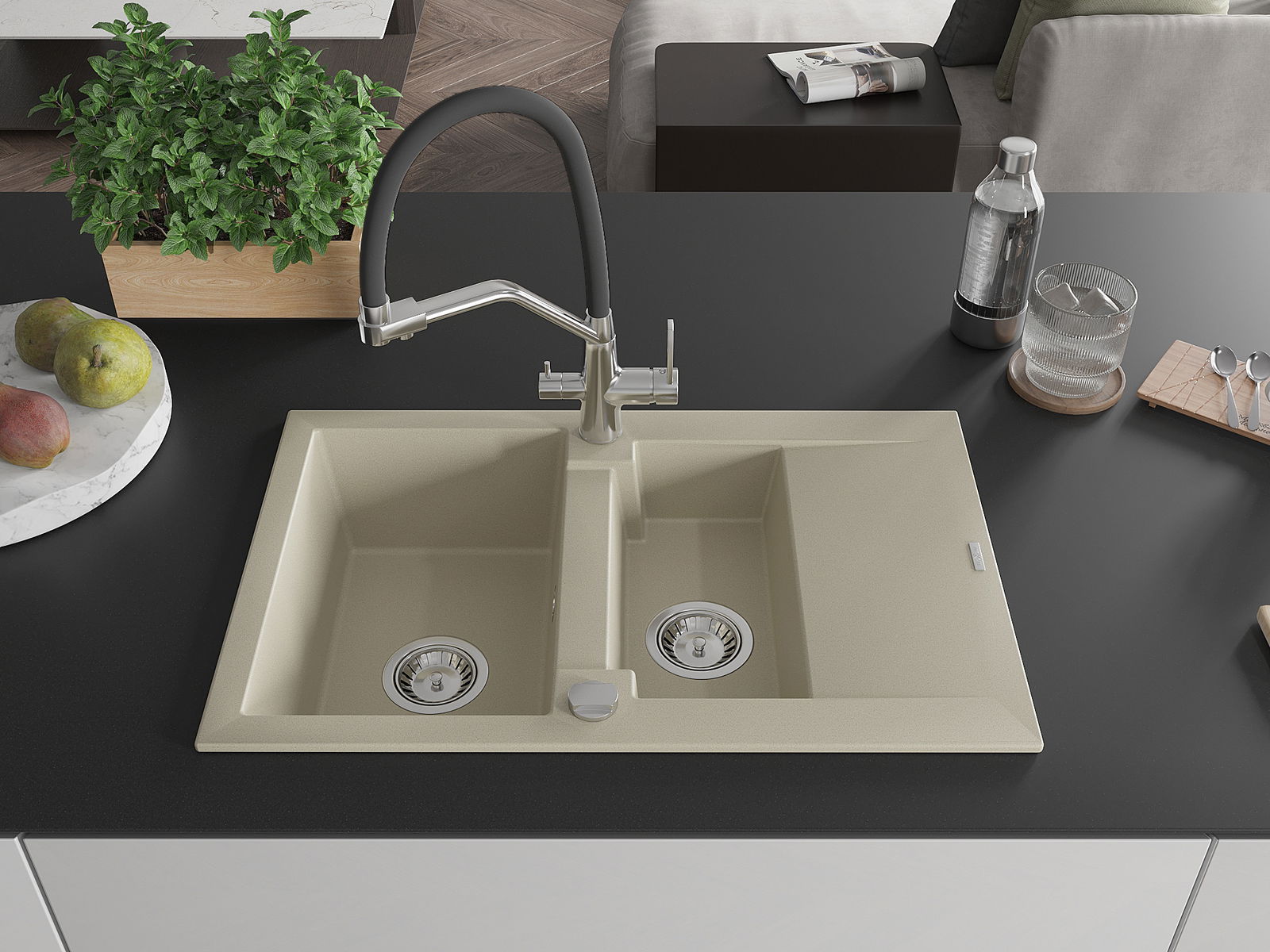 L'évier est fabriqué en granit de haute qualité. Il constitue un complément élégant et surtout pratique pour toute cuisine, quel que soit son style. La qualité et la durabilité du granit garantissent de nombreuses années d'utilisation.