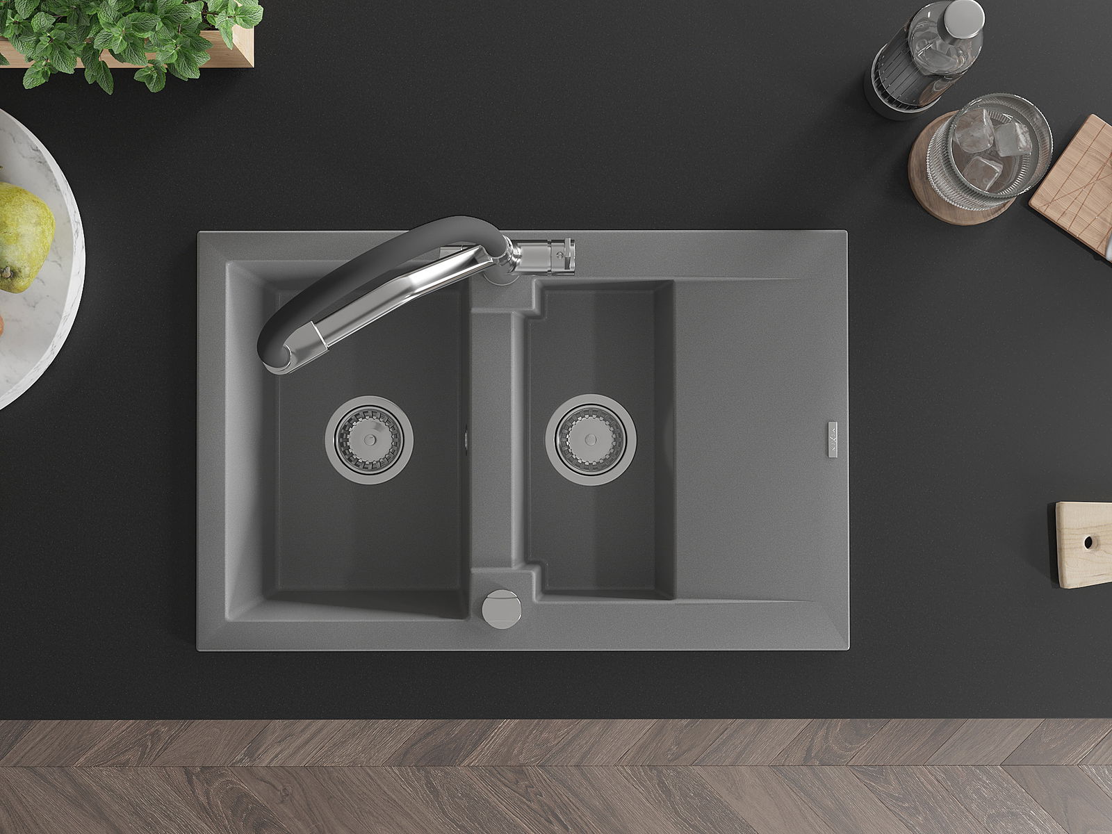 La surface de l'évier est très bien trempée et se distingue par une résistance exceptionnelle aux dommages mécaniques et aux rayures. Ce matériau durable vous permettra de profiter de son bel aspect pendant de nombreuses années.