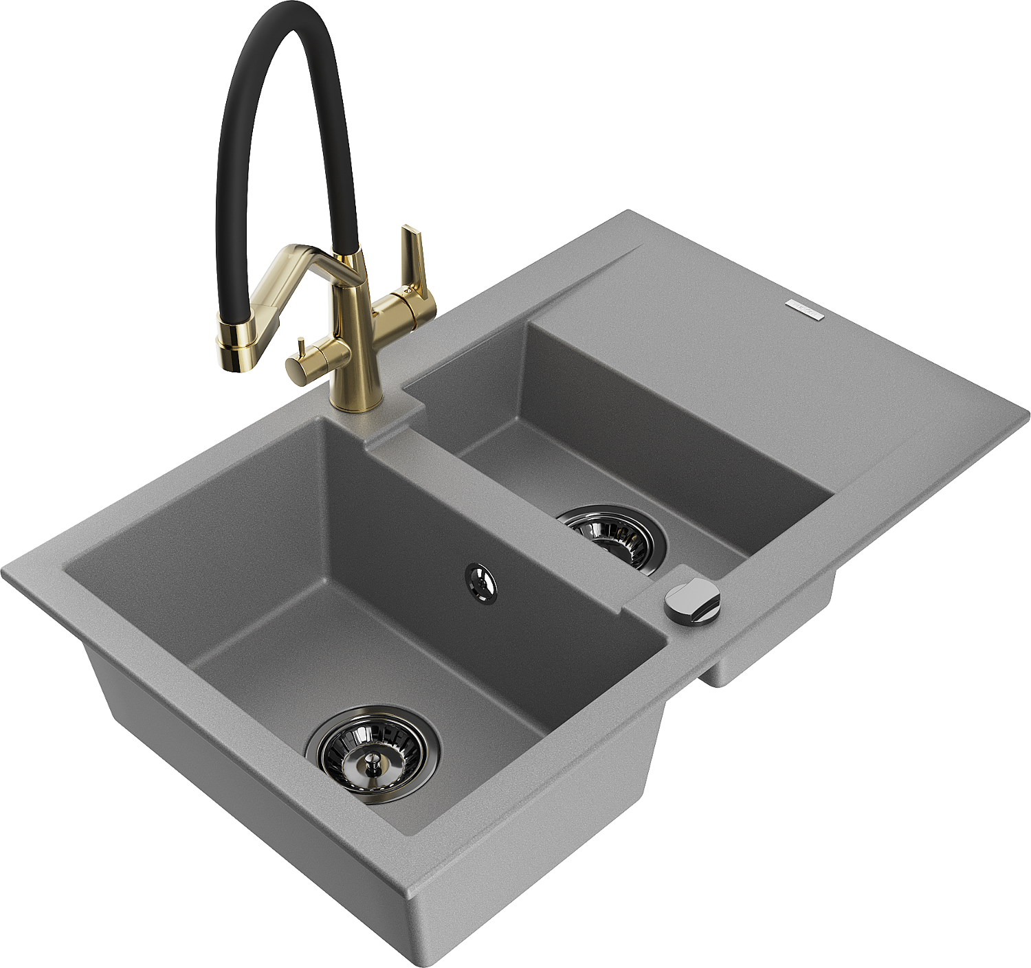 Mexen Gaspar évier en granit 1,5 bac avec égouttoir et robinet de cuisine Duo, gris - 6507-71-671701-57-B